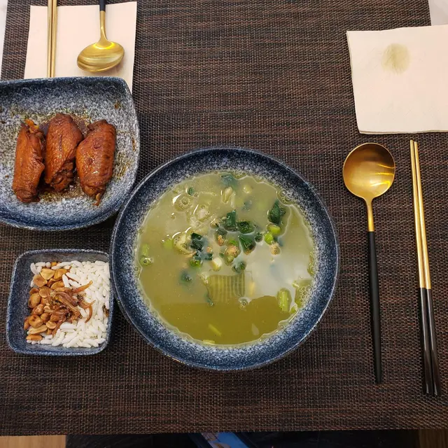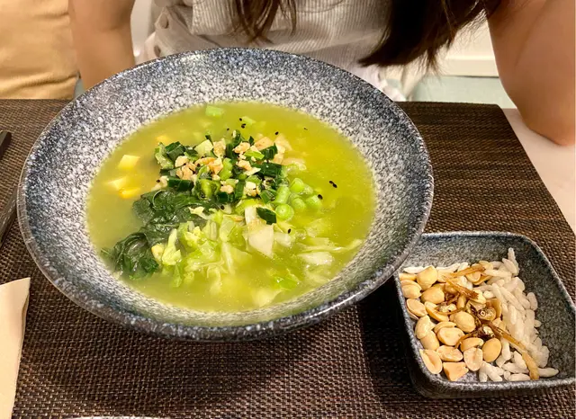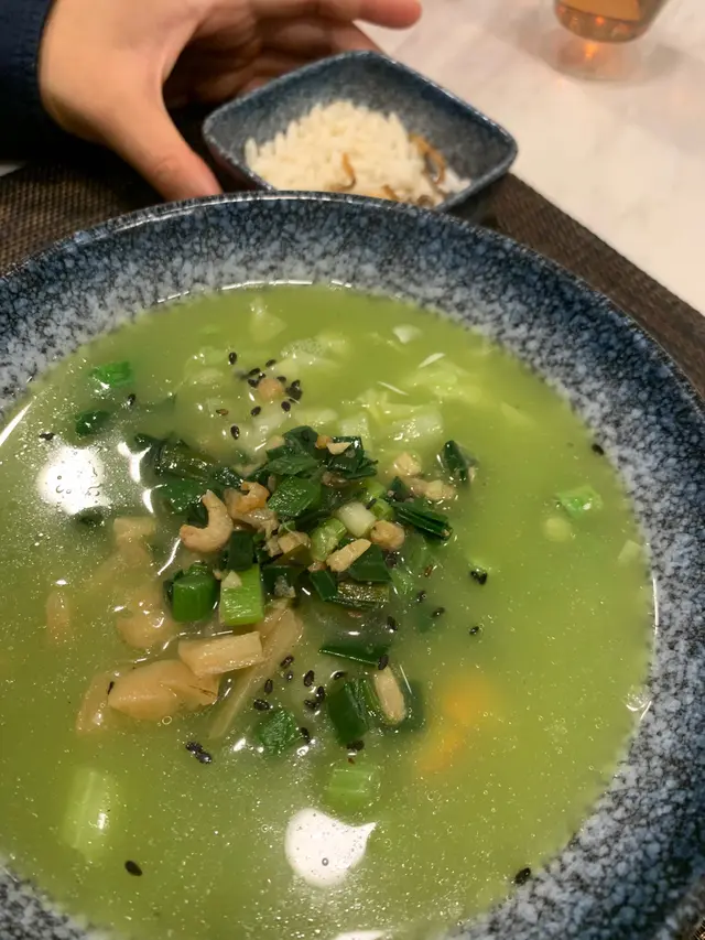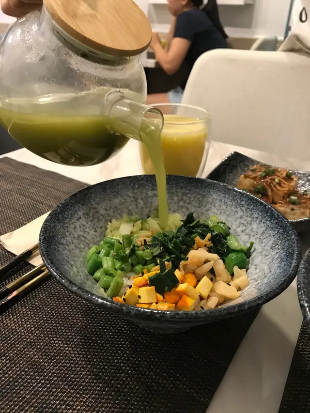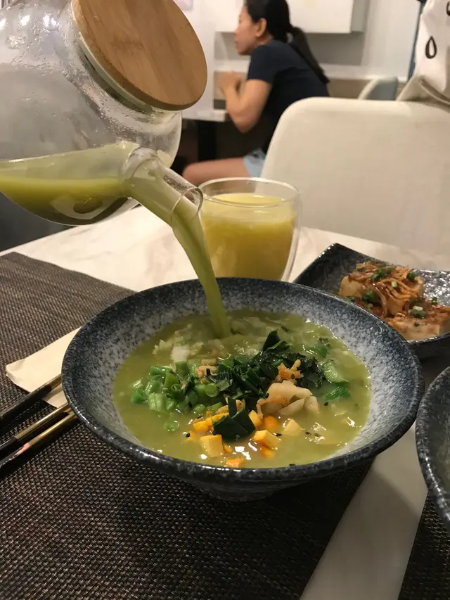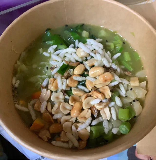 現在疫情,但間中唔想煮都會嗌下外賣,第一次幫襯,竟然變咗最後一次幫襯😭因為之前本人比較懶,冇乜寫食評,但近排再行過,舖頭竟然已關門大吉,估計係小店店主捱唔到落去,不過希望店主嘅心意,有朝一日可以繼續番。當天我外賣咗個套餐,細擂茶飯配粟米餃,外賣用全紙盒裝,用紙袋,好環保,好有誠意,值得欣賞👍🏼👍🏼回家打開,滿滿驚喜,同佢傳單上嘅相片,係一模一樣,冇花冇假。打開未加湯時:可見粒粒花生,配菜都切到一粒粒咁,好仔細,仲有炸到一粒粒嘅飯。加咗擂茶之後:因為係綠色,所以感覺上好健康好田園feel,食落口有好多切粒蔬菜,一路食一路聽到「索索聲」。加埋粟米餃,簡直健康之選。多謝老闆嘅努力。希望有機會再去食到你的高質食品啦。…查看更多
