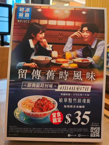 敏华冰厅,位于大角咀海辉道11号奥海城1期UG楼UG22号舖。 常餐$59 ~ 惹味五香肉丁 通心粉, 软多士,煎双肠&太阳蛋, 冻柠乐$6, 热斋啡$20。 ▪️惹味五香肉丁通心粉 $59 ~ 五香肉丁份量好少, 汤底太多水汪汪的,下次都系食返牛肉公仔面了! ▪️软多士,煎双肠&太阳蛋 ~ 软多士厚切香脆美味, 双肠和太阳蛋做得不错, 太阳蛋煎得几靓。 ▪️冻柠乐$6 ~ 冻柠乐解渴美味。 ▪️热斋啡$20~ 咖啡味道完全唔够浓, 唔好饮。 平时食开沙茶牛肉公仔面, 今次食五香肉丁, 个人感觉比较失色。 🏷️温馨提示~ 整个用餐体验均属个人分享意见, 只作参考😊。 …查看更多