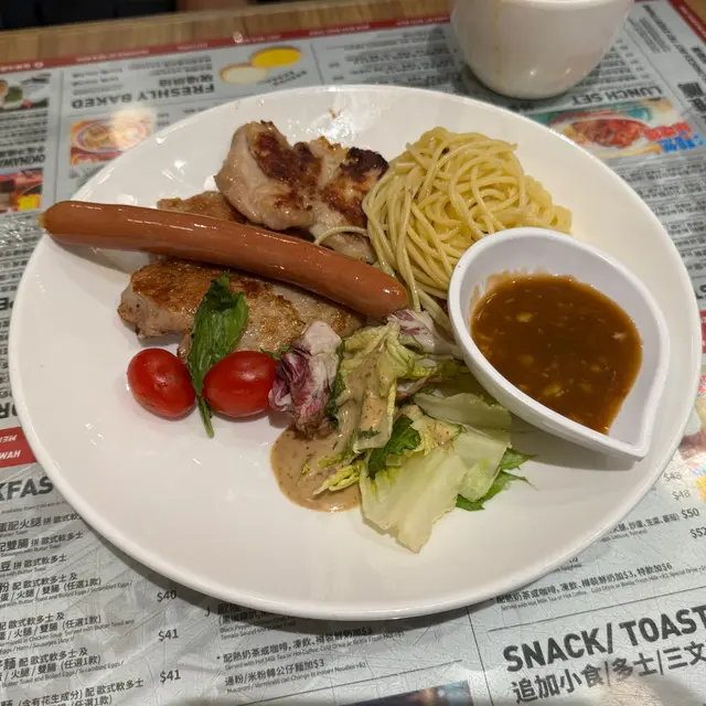 敏華冰廳 (新港城) — 晚餐超級雜扒飯與沙茶牛肉公仔麵的飽足體驗今晚同朋友嚟到新港城嘅敏華冰廳,試咗佢哋嘅晚餐「超級什扒飯」同「潮式沙茶牛肉公仔麵餐」,整體感覺飽足有餘,但味道同消化上幫手術治療 就有少少掙扎。 超級什扒飯(咖喱汁) 咖喱汁白飯,以為冇黑椒汁咁辣,但原來咖喱汁辣度頗高,入口即刻有股衝擊感,唔係溫和派,適合鍾意刺激嘅食客。不過辣得嚟少咗層次,香料味唔算突出,反而搶咗什扒(豬牛雞混合)本身嘅味道。雜扒份量足,但肉質普通。配嘅羅宋湯正常發揮,總括辣到成餐飯掛住抹汗。 潮式沙茶牛肉公仔麵配料豐富:牛肉、火腿、太陽蛋同軟多士,睇落好滿足。沙茶醬香味濃,但汁底偏油膩,公仔麵吸晒油之後食落好滯,牛肉片算嫩但醃得稍鹹。多士烘得脆身加牛油係唔錯,但整體組合太「重」,食到一半已經有飽到上心口嘅感覺。 總結兩道菜加埋$143,價錢合理,份量絕對夠飽,但味道同食感就中規中矩。超級什扒嘅咖喱汁辣得單調,沙茶麵又太油滯,晚餐食完真係一路漲住走,未必適合追求輕盈或細膩口味嘅人。如果鍾意「大件夾抵食」,可以一試,但建議配杯凍飲解膩! …查看更多