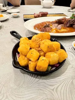 中环🚇呢间文兴酒家源于伦敦🇬🇧开业多年著名嘅中餐馆,喺香港亦都已经开业多年🌟,入边装修布局雅致得体✨,出品高质价钱合理💰,亦系政商界嘅著名饭堂之一🥢。呢度除左好似一般酒楼有茗茶🫖之外,亦有多款果味梳打特饮🍹,同埋奶茶咖啡☕,啱晒唔同人士嘅喜好❤️。卤水猪仔脚🐷去咗大部分骨,啖啖肉充满骨胶原🤤,入口卤水香十足,🍖肉质软嫩Q弹。 烧味双拼🔥(蜜汁叉烧拼烧鸭🦆)绝对系呢度必食嘅✅。半肥瘦叉烧🐖超松软,有小小㶶边啱啱好👍,咬落 juicy 肉汁狂泻💦,超正呀!烧鸭佢哋特别选用被誉为🦆鸭子中的「和牛」,有「天下第一鸭」🏆之称嘅「爱尔兰银山鸭」👏,鸭肉好粉嫩而且肉厚多汁💧,个皮烧得好香脆😍而且唔会太肥,点小小🤏佢哋特制嘅甜豉油味道更加有层次✨!炖汤🥣用料十足好高质👍,肉香味同菇鲜味🍄互相辉映,汤色如茶但超浓郁😋,饮完成个人都好舒服😌。蟹黄脆虾球🦀一上枱充满视觉冲击,炸虾球🍤成个乒乓波🏓咁大,外脆内弹牙,面头铺满蟹黄酱🦀,咸鲜澎湃🌊,加上底层脆多士🍞吸尽精华,三层口感大满足呀💥!金银蒜鲜鱿蒸茄子🍆上咗枱都仲会一路♨️暖住好贴心❤️,超香浓嘅金银蒜🧄铺满喺鲜味爽脆嘅鱿鱼🦑同埋淋滑嘅茄子上边,茄子🍆吸尽蒜油香,送饭一流🍚。鲜茄鱼肚浸时蔬🥬嘅精髓就在于发到胀卜卜嘅鱼肚🥢索满清鲜鱼汤嘅🐟精华,加上上菇🍄、白菜仔🥬同埋鲜茄🍅,配搭好丰富✨。呢度嘅招牌炒饭🔥用料实在太过分🤯,一上枱面头铺满日式鲣鱼碎🐟都未感受到佢嘅威力💥,一舀起先发现佢入边劲多料🤩,花胶、鲜鱿鱼🦑、樱花虾、虾米🦐同埋香菇碎🍄等嘅海味共冶一炉🌊,𠮶种鲜味好似成条🤤海味街搬咗过嚟咁!加上饭粒炒得够干身🔥又超入味,用热辣辣瓦煲🍲上放耐左底部仲会有小小饭焦香😍,真系超正💯!…查看更多