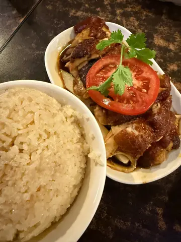 平时钟意食正宗新加坡海南鸡的朋友,一定要试下 大角咀这间藏身横街小巷的小店。餐厅餐牌极简,主打「黑白鸡饭」和自家制叉烧,看似简单却真材实料,价格亲民,是街坊级的隐世好味。🐥🖤🤍👫🥢餐厅的老板很喜欢和食客交流入厨心得,这餐饭令我对正宗做法的新加坡海南鸡加深了认知。👨🏻🍳🐥增量套餐除了一份鸡外,还有一碟油菜、正宗的肉骨茶和油饭,晚餐6点后还送饮品。🥬🍲🐥🍚肉骨茶用了马来西亚的做法,药材的味道相当浓厚,带有回甘的味道,当中的「熟地」更是可以清理身体的垃圾,促进营养吸收,是非常有益的汤品。🍲🇲🇾油饭是先用上姜、葱等香料来爆香,令米饭不会有油腻感,与外间的油饭入口已经有区别。🫚🍚✨ 白鸡增量套餐($103),「黑白鸡」做法的区别,主要在于用来浸鸡的汤不同,白鸡是经过细致而且缓慢的烹调过程,突出了其鸡肉「嫩」与「鲜」的特性,很适合一些喜欢品尝清淡原味、追求嫩滑口感的朋友。🐥🤍✨ 烧鸡增量套餐($103),「黑鸡」是先腌上秘制的酱汁再以高温烤煮,令其外皮多了一份焦香脆皮的口感,鸡肉的油脂香气浓郁,比起「白鸡」更为惹味。🐥🖤餐厅的自制的酱油、辣椒酱和姜蓉酱同样制出色,用来点鸡食添加了一份风味。🫚🌶️✨ 薄荷奶茶(+$5),结合台式奶茶基底和清新薄荷元素,饮落冰凉解腻。🧋🌿✨ 金桔柠檬优多(+$5),酸甜清新的金桔撞入乳酸饮品,几有夏日风味。🍋🍹…查看更多