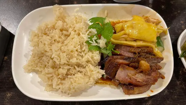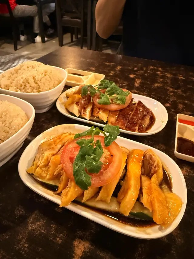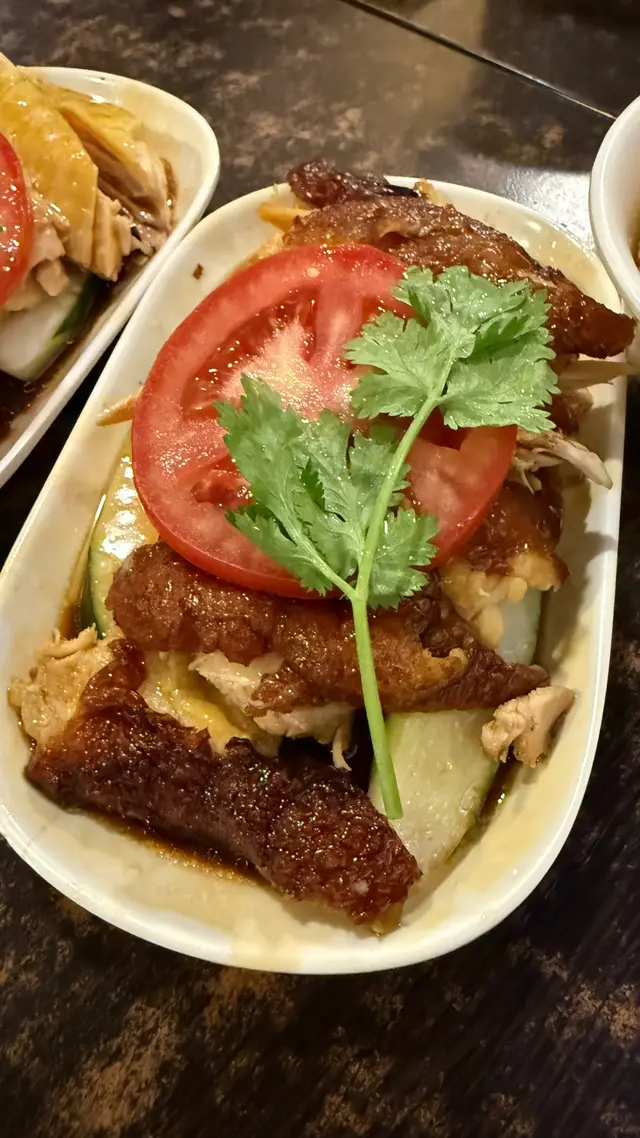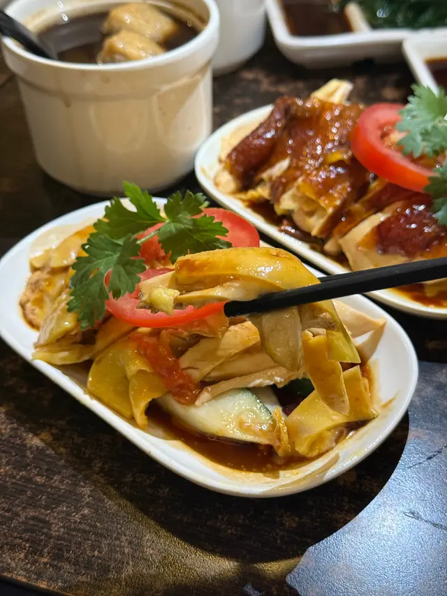 平時鍾意食正宗新加坡海南雞的朋友,一定要試下 大角咀這間藏身橫街小巷的小店。餐廳餐牌極簡,主打「黑白雞飯」和自家製叉燒,看似簡單卻真材實料,價格親民,是街坊級的隱世好味。🐥🖤🤍👫🥢餐廳的老闆很喜歡和食客交流入廚心得,這餐飯令我對正宗做法的新加坡海南雞加深了認知。👨🏻🍳🐥增量套餐除了一份雞外,還有一碟油菜、正宗的肉骨茶和油飯,晚餐6點後還送飲品。🥬🍲🐥🍚肉骨茶用了馬來西亞的做法,藥材的味道相當濃厚,帶有回甘的味道,當中的「熟地」更是可以清理身體的垃圾,促進營養吸收,是非常有益的湯品。🍲🇲🇾油飯是先用上薑、蔥等香料來爆香,令米飯不會有油膩感,與外間的油飯入口已經有區別。🫚🍚✨ 白雞增量套餐($103),「黑白雞」做法的區別,主要在於用來浸雞的湯不同,白雞是經過細緻而且緩慢的烹調過程,突出了其雞肉「嫩」與「鮮」的特性,很適合一些喜歡品嚐清淡原味、追求嫩滑口感的朋友。🐥🤍✨ 燒雞增量套餐($103),「黑雞」是先醃上秘製的醬汁再以高溫烤煮,令其外皮多了一份焦香脆皮的口感,雞肉的油脂香氣濃郁,比起「白雞」更為惹味。🐥🖤餐廳的自製的醬油、辣椒醬和薑蓉醬同樣製出色,用來點雞食添加了一份風味。🫚🌶️✨ 薄荷奶茶(+$5),結合台式奶茶基底和清新薄荷元素,飲落冰涼解膩。🧋🌿✨ 金桔檸檬優多(+$5),酸甜清新的金桔撞入乳酸飲品,幾有夏日風味。🍋🍹…查看更多