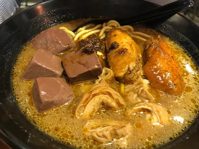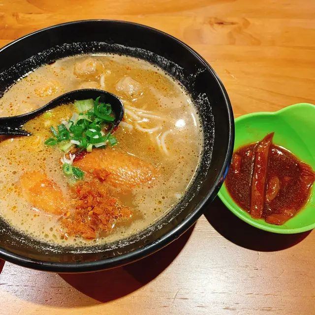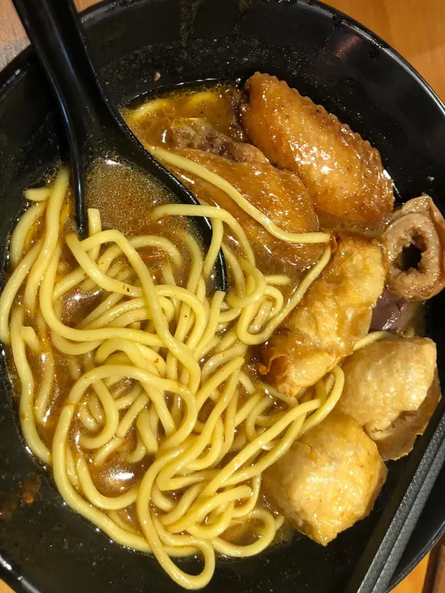 魷魚雞翼魚蛋米線 中辣一睇圖就知有幾唔掂😅成碗野起哂泡咁,睇到已經無乜食慾湯底,完全唔係深水埗文記嘅腩汁,睇色水都知辣汁,完全同深水埗文記唔同,呢隻有啲沙爹味魷魚,睇圖都見到得3條😑文記起碼多佢1-2倍。味道還可以,但因為佢另上,啲魷魚凍的魚蛋,太淋瑞士汁雞翼,無乜瑞士汁味,但夠大隻總括黎講,撇除佢嘅味道完全同深水埗文記唔同,以車仔麵黎講我覺得都唔合格👎🏻…查看更多