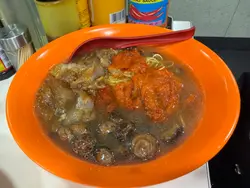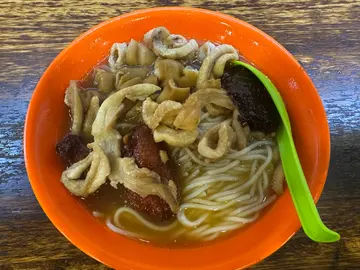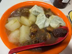 If we must pencil down some of the local delicacies in Hong Kong, I believe cart noodles will be on the list. Even though it is common, those that can be rated as ‘must try’ are not so many. I have a personal preference on one in Causeway Bay, but hearing this one is also very good, we came to Fuk Wing Street in Sham Sui Po to experience.Arriving at the early lunch hours at 11:30am, there was already a queue lining up outside. Fortunately, many people are buying to takeaway, and we did not need to wait very long before it was our turn to order and got seated straight away.The price apparently depends on the number and type of ingredients ordered. I had Yellow Noodles with Pig Intestines, Turnip, Chives Dumpling, and Small Shiitake Mushroom ($58). With added spiciness, the soup is delicious, without feeling excessive use of MSG. The noodles had a good texture, and the ingredients were also very good. I was particularly impressed with the intestines for its tenderness and thorough cleaning, as well as the mushroom having a rich fragrance and taste.My wife had Thin Noodles with Beef Tendon, Pig Knuckles, Small Shiitake Mushroom, and Sweet and Sour Gluten ($62). The beef tendon was very soft, full of collagen, with deep flavours.We also had the signature Swiss Chicken Wings ($39). The name came from the misunderstanding when the locals translate ‘sweet’ to ‘Swiss’. The chicken wings were tender with the sauce tasting similar to the famous Tai Ping Koon, though I would say the latter did have the better chicken wings.The other side dish was Curry Four Treasures ($45). A traditional snack featuring fish balls, pig skin, pig blood curd, and turnip with curry sauce. All quite nice, except the fish balls, which were disappointing. The curry sauce was fragrance but not spicy at all, so you would need to ask for extra spiciness.The bill on the day was $206. The overall experience was generally good, and I can understand why there are so many customers. But there are better cart noodles we had tried.…查看更多