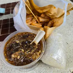 今朝去咗街坊外卖店买早餐食,呢间斗来香卖好多港式食品,价钱大众化。😍买了碗鱼肉碗仔翅非常足料,好大碗,可以加醋,胡椒粉,麻油等调味。买完忍唔住即刻去附近公园开餐。😋好耐无食过混酱肠粉啦,加入麻酱,甜酱,豉油同芝麻,非常香口。👍另外仲有白糖糕,我儿时最爱的高点,日口系米的清甜味💓😍百吃不厌。阿女中意食餈饭,买咗个比她放学食,大大个热辣辣,一定饱肚。👍斗来香筲箕湾道362-368号益基大厦地舖