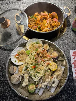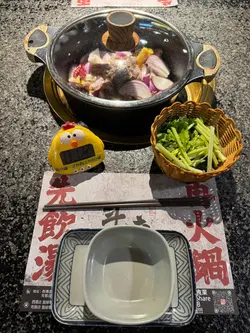 一直想试斗滚好耐,但次次想Walk in去食都冇位。难得知道放早,早一星期预先打电话去book,终于食到。佐敦店铺面都几大,入口处就有怀旧电视机装饰,几有趣。我哋约咗5:30 ,食最早轮,入场时未有好多人。这里主打先饮汤,再打边炉。我哋坐低先点咗呢度的招牌,养生乌鸡炖汤。点完汤,鸡煲已经上枱,选了BB辣,加了牛腩,跟住侍应的指示先炒4次,就食得!鸡煲好足料,够惹味。鸡煲可以无限添加,但我哋已经急不及待食海鲜。再上枱的是蒸海鲜,有鲍鱼、蛏子、扇贝、海虾、花蚬、龙趸片和赞岐乌冬。简单的蒜蓉香葱。放在荷叶去蒸,特别清香,海鲜十分清甜。乌鸡汤大大一锅,大半只乌鸡煲得好腍,仲有瘦肉、虫草花等配料,汤头清甜不腻,好好饮。自助区琳瑯满目,选择好多,而且摆放得好整齐,令人赏心悦目。必食的包括手工墨鱼滑、虾滑、鳝片、脆肉鲩、爽肚、猪颈肉、猪润等,仲有各式丸类及菜蔬,鹅肠、炸鱼皮是我的爱!火锅料选择真系好多,而且细细份,可以乜都试啲,啱晒多心的人。另外只要全枱人喺社交平台留言就可以任食手切牛颈脊及黑豚肉,牛颈脊的质素好好,我见每枱枱上都摆放了两三碟,系受欢迎嘅项目不二之选。麻辣鸡煲、鲜味蒸海鲜和老火靓汤这三个完美结合,都不过三百,价钱可爱又可亲,难怪成日full booking!最后的甜品,只食得落椰汁雪燕和一条雪条就收了手,但已经感觉好满足!这个任食三重奏,食物丰富,又有鸡煲食又有靓汤饮,男友大赞!…查看更多