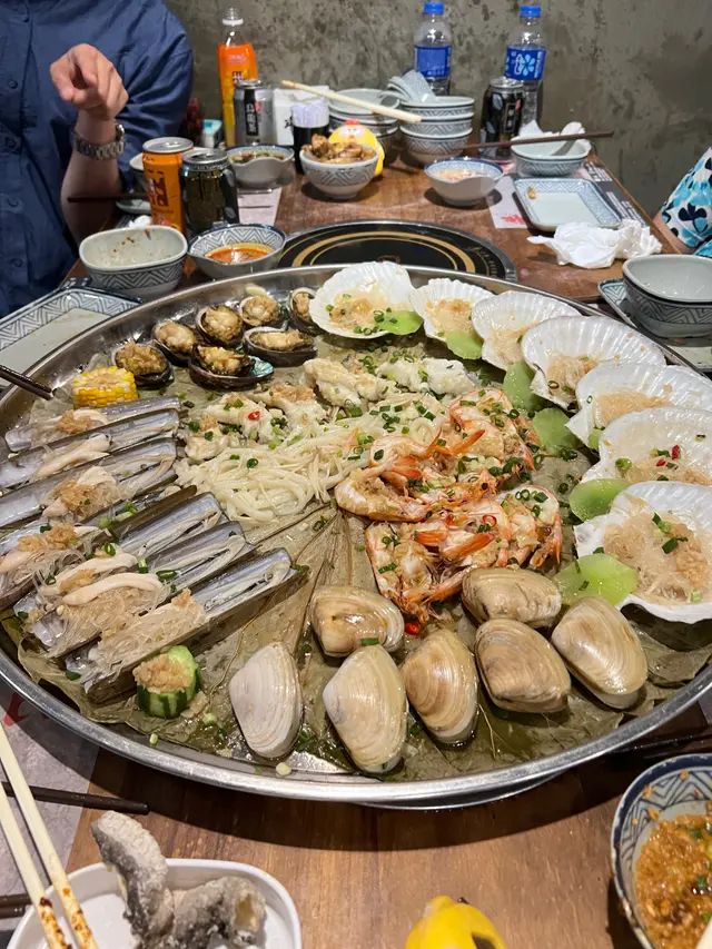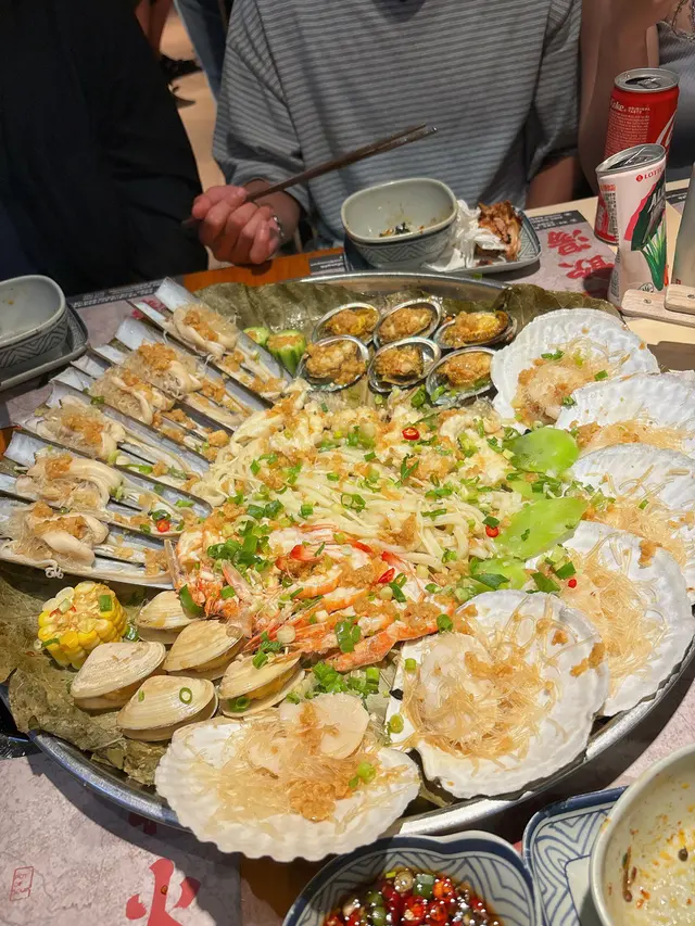 成盤海鮮一上枱,即刻有種「今晚食飯唔係求其」嘅儀式感 ✨蒸海鮮拼盤上得夠霸氣,帶子、蜆、鮑魚仔、蝦、蟶子、花甲、粉絲樣樣齊,蒜香、蔥香、鮮味輪住爆 🧄🧅🦐最鍾意係啲粉絲吸晒海鮮汁,每條都係精華之線,好爽口又冇腥味 🪢雞煲就係預料中嘅惹味,雞件入味唔鞋,辣度夠 kick。食完仲可以加湯打邊爐,一鍋兩吃,CP 值爆燈 🐔🔥🍲湯底滾一滾,仲有啲雞煲底料繼續貢獻香味,靜靜地食到成個人都暖晒,係冬日/冷氣房必備療癒系火鍋 🍽️…查看更多