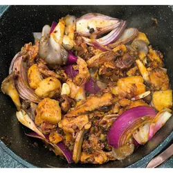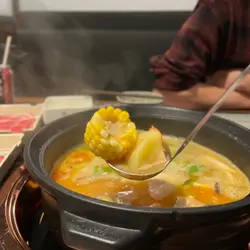 假期晚上订6:30可以食2个钟,坐位宽敞,楼底又高,所以唔会觉得油烟或局促!先食辣鸡煲,味道唔错,份量都好足够!如果唔够,可以添加!我哋一煲就够,留肚食其他。接住食蒸海鲜,有多款海鲜:鲍鱼,蛏子,石班块,贵妃蚌,虾,蚬,每款一件冇得添加,觉得唔错,只系虾比较细!食到差唔多就食火锅,先饮火㶽汤,我哋拣咗椰子鸡,都好清甜!饮完一碗汤就打边炉,侍应一次给我们几碟牛肉,因为每碟只有4或5片,份量很少,要重复叫!其他火锅配料蔬菜,丸类就自己出去攞!见到鱼皮及响铃攞晒就冇补充。饮品,甜品,雪糕都系自助,不过比较普通!总结食物质素唔错,环境可以,一个价钱食到3款菜式,都算抵食!