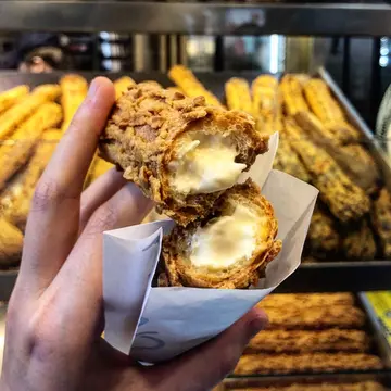 Saw this street food multiple times on instagram and I finally tried it in Mong Kok! However, I found it just ordinary.It’s like the Spanish churros, but with matcha vanilla filling. Though the exterior looks dry and brown, the pastry is actually quite crunchy. The cream isn’t too fatty and heavy. Yet, apart from all that, I don’t think it’s worth so much attention online because it’s just some run-of-the-mill pastry with vanilla cream.…查看更多