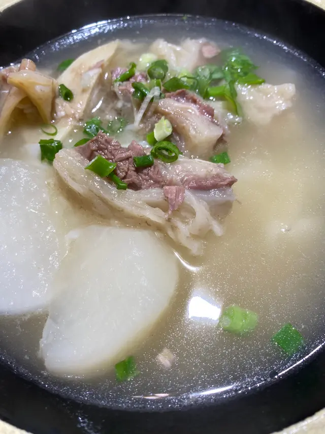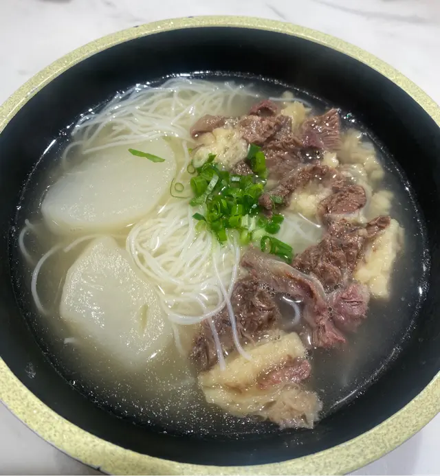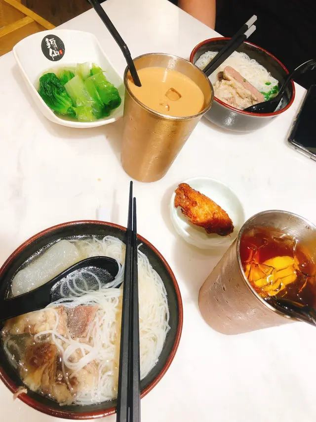 今天特別想食牛腩立即上網搜尋,發現新仙清湯牛腩被列入在內,油麻地近我中午就去試試看。新裝修店舖光猛整潔,乾淨舒服,服務姐姐態度好有禮貌。🥢招牌清湯牛腩米粉 $50先嚐一口湯底清甜可口有牛骨香氣,牛腩入口鬆化肉汁豐盛,軟腍中又不失嚼勁,白蘿蔔同樣清甜無渣,米粉吸盡湯汁好食到停不了!😋🥢慢煮紅燒牛筋腩粉絲 $50這是同事的外觀有點油膩,嚐了牛筋算是香軟,不過牛腩就有點鞋口有渣,紅燒汁都比較鹹了一點,兩者之間我比較喜歡我的清湯牛腩。😂午餐有飯有麵包一杯熱飲價錢不貴。查看更多