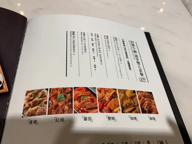 招牌牛腩雙人套餐 $199二人套餐都幾多野食,有前菜拼盤六小碟,健康三色菜,牛腩三款,牛腩湯,白飯和飲品。鐘意佢全部細細碟,多款式可以每樣都試下。清燉牛腩湯即係清湯腩的湯底,牛味濃而且唔油膩。更特別之處係佢用茶壼上,一杯逐一杯咁飲都幾過癮。新仙六宮格頭盤小菜六小碟,有秋葵、小番茄、青瓜、花生、木耳同藍莓醬梨,夠特別又 fresh, 睇得出好有心思,欣賞佢。牛腩六選三,我地揀左紅燒+ 咖哩 + 清湯。紅燒夠惹味又唔油膩,除左牛腩仲有牛筋亦好入味,紅燒汁用來撈飯真心正。而咖哩就夠香夠辣,出奇地唔係港式咖哩,反而有少少印度咖哩的風味,有驚喜。清湯伴半肥瘦牛腩,睇得出係最靚的部位,仲有少少胡椒香的蘿蔔,冇得輸啦!三色菜除左肉肉,亦有三款菜菜,夠健康套餐包飲品,除了一般的檸茶奶茶之外,仲有好多特色飲品。試左咸檸蜂蜜,夠潤喉,呢個時候飲返杯,有病醫病,冇病強身,一流噃!環境亦乾淨闊落,會再來試其他野。查看更多