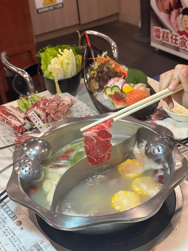 好友即將到澳洲發展,我們一大夥朋友一共15人,想搵有私人空間而且食物質素又ok嘅餐廳。朋友介紹呢度係以雞煲打邊爐為主,我哋今日呢個套餐仲包括刺身海鮮和牛肉,除咗刺身同海鮮係按人頭提供份量,其他包括啲靚牛肉都係無限量供應的。飲品任飲,仲可以免費自攜走水。一開始就畀咗每人一件蝦多士,都好高分,炸嘢做到唔油膩🍤。蝦唔算好大粒但係新鮮蝦,非常好食。先講佢個雞煲,做得很好,四川香味非常傳統,仲可以分辣同埋唔辣。另有一煲鴨血,鴨血都好夠味。刺身拼盤食材幾新鮮。花膠豬骨湯底就麻麻地,不過重點都係牛肉,所以湯底我就唔係好介意。牛肉佢都畀到啲靚嘅,有牛小排、牛頸脊、一口牛。基本嘅肥牛就太肥,我冇食。火鍋配料推介響鈴,人見人愛,個個讚。食咗咁多嘢,我哋都冇額外叫其他配料,真係好飽!總結嚟講,香港地包房吃飯,味道又不錯,這裡係一個不錯的選擇,無論是食物質素、環境定價錢都非常合理。…查看更多