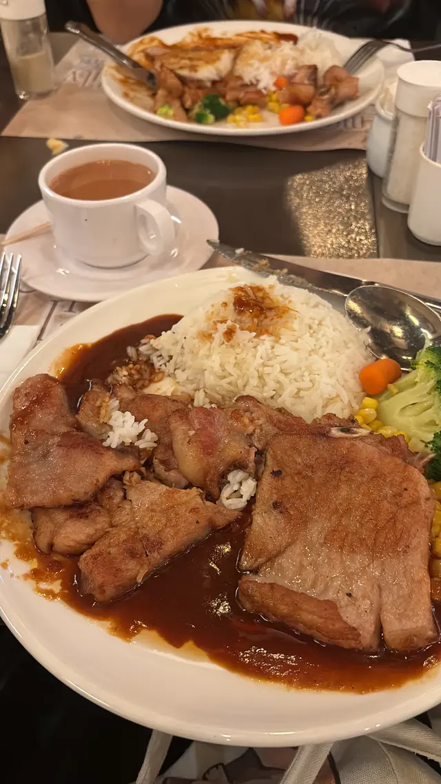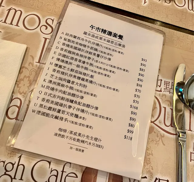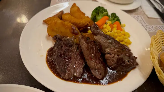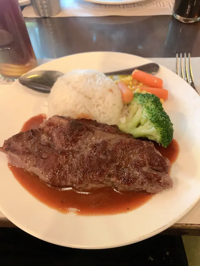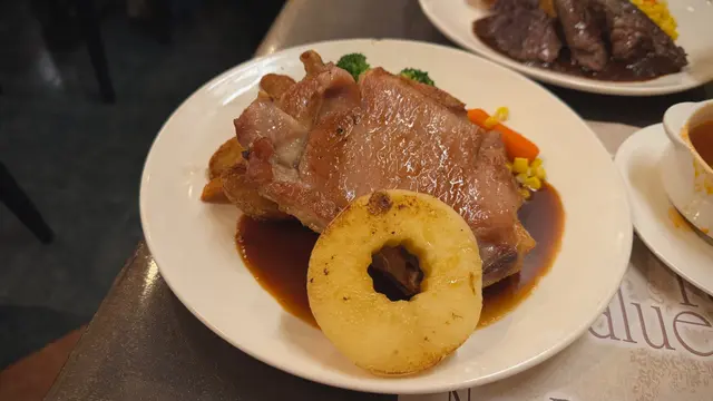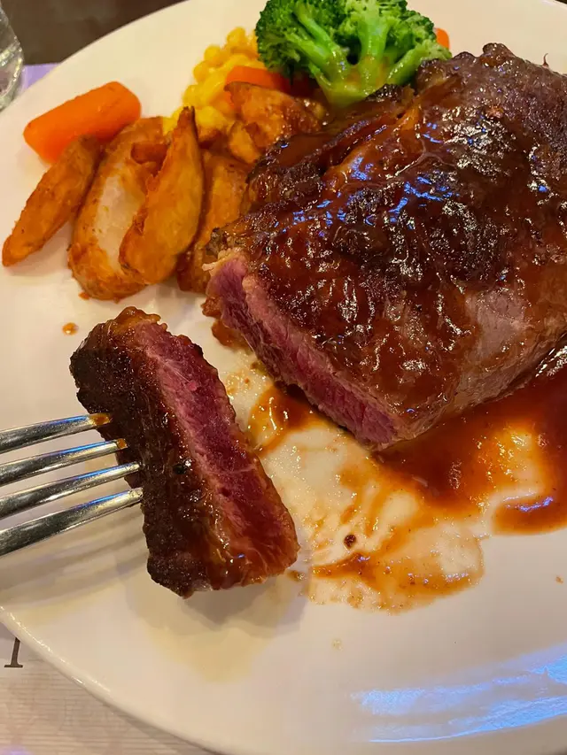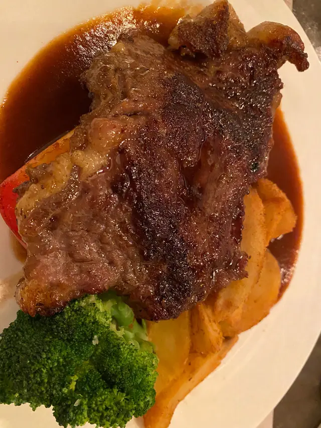- 慢燒澳洲一級牛柳配薯菜 $98 凍檸茶- 香煎豬扒伴焦糖蘋果燒汁配薯菜 $73 凍檸水平時lunch都係食茶餐廳 難得捱到去星期五 就梗係要黎個happy Friday😎 門口有啲舊式扒房feel 如果唔鍾意食薯菜嘅話 呢兩個set都可以揀配飯或者意粉 慢燒澳洲一級牛柳 牛柳算有啲厚度 但依然好腍 每一啖都咬得開 比想像中有啲驚喜 可惜啲薯菜炸到有啲過火同埋上枱已經凍咗 咬落去有啲硬香煎豬扒伴焦糖蘋果燒汁 原本我諗住焦糖蘋果燒汁 係真係一個汁嚟 上枱嘅時候我仲以為個舊係菠蘿嚟😂點知切落去加食埋先知係蘋果嚟 睇嚟係時候要休息下😴蘋果多汁又甜 幾特別嘅一個配搭 豬扒如果可以再juicy啲同腍啲就perfect呢度凍飲唔洗加錢 不過就要收加一服務費💰$188…查看更多