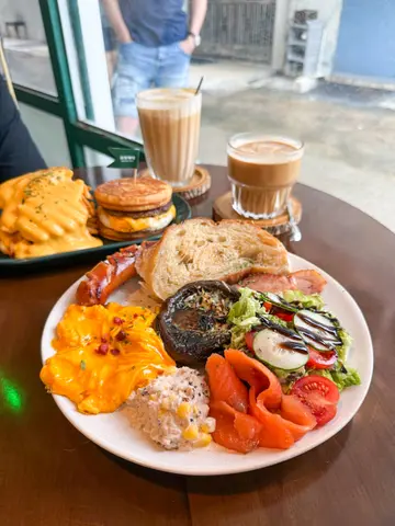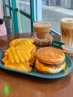 EMI搬左去大西北都好几年, 呢间由搬入黎bookmark左到最近终于有机会去了! 呢度环境好chill, D野好好食, 仲系pet friendly嘅添!佢地收6pm, 我地去到已经4pm了, 有部份野食都已经冇左, 今次主食就叫左个新墟All Day同埋No.1还原猪柳强Pancake配邪恶芝士脆薯格~all day breakfast有佢地自家制嘅sour dough, 好软熟! 至于个还原猪柳强Pancake呢, 冇记错佢地早系香港mcdonald未有mcgriddle都已经出左呢个pancake, 有对比下我觉得佢仲好食过mcdonald, 佢冇咁甜而且香软好多!! 🥞咖啡我地就叫左花生奶盖鲜奶咖啡同埋手工焦糖脆脆冻鲜奶咖啡, 花生奶盖都比我想像中浓, 都几唔错~☕今次MVP一定系特浓开心果炼奶西多, 佢完全做到港式西多嘅feel, 只系入面花生酱转左做开心果酱, 除左夹心之外面头都仲有一层酱, 食落好浓郁好香果仁味又唔会死甜, 配搭埋vanilla雪糕完全系绵上添花, 大推🤌…查看更多