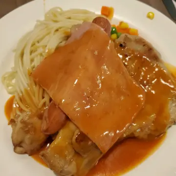 路过此地,$56一个午餐包一片蒜蓉多士、浆水白汤、主食、及冻饮加$2。对比对面一家米芝兰加持之粉面店卖$49一碗粉的价钱实属合理。可惜一代不如一代,此店看其装修甚具历史,但此等历史轻松败给了下一代。店内一肥女子,相信是其店家之女儿,服务态度恶劣,现场呼喝众多食客。虽价格合理,食物平庸,但随之附送此等服务享受,劝君慎入。除餐白汤呈浆水状外,其它食物尚算合格。主食有嫌味道略缺,但份量充足,其急冻扒类之处理方法亦算洽当。…查看更多