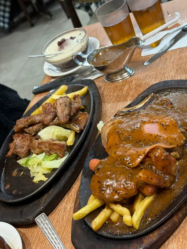 自從搬咗去新界之後就好少過嚟食,難得今日同屋企人都得閒就過嚟懷舊一下,味道比想像中好,海南雞同咖喱值得一試,我仔仔就食牛柳餐。鐵板黑椒牛柳,只需要$105 ,連餐湯餐包,我覺得好抵食,餐湯真材實料,沒有加太多調味料及醬料,好像是食物的原汁原味煲出來,然後黑椒汁也比較淡味,唯一可惜嘅係,件牛柳略為鞋!然後薑蔥雞煲,啲雞好好食應該唔係平時嗰啲冇雞味嘅平雞,可能類似三黃雞之類,好有雞味,而且上菜嘅時候好夠熱,啲汁仲出晒煙渣渣聲おいしい😋!而咖喱牛脷方面就係懷舊的味道,仍然都比較淡!大部份食客都上了年紀,好像是熟客,有部份上了年紀的兩公婆感覺上以前是來這裏拍過拖現在再嚟兩口子好溫馨…查看更多