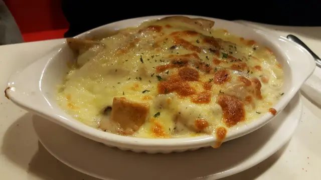 叫食芝士蕃茄焗豬扒飯 (HKD 55)。飯不是炒底,失色,失香,失味。焗飯不用炒底是最為錯誤的情況,就似鐵板用碟上,算嘜野?飯底稍硬,不是焗飯應有的硬度,相信來貨米或未有浸泡的原因。豬扒有其他味道,並不單純。應已事先醃製或煮熟,並不合適用作焗飯。豬扒肉質梅爛,並沒咬口,厚度稍比大家樂少。只有蕃茄汁很酸,但又沒有蕃茄,好失望。其他配料又沒有,好失望。坦白講。永遠食焗豬扒飯,一定會要大家樂比較。有基準就比較到。唯一值得的是芝士量,如牆邊廣告般,可拉絲。…查看更多
