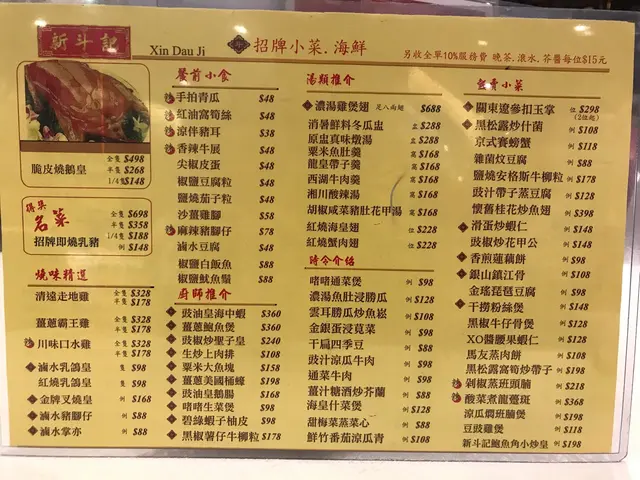 新鬥記有好多間店,食過嘅呢幾間基本上味道都差唔多。初次是朋友帶我去佐敦間店食嘅,味道好正,尤其是燒乳豬,留下深刻嘅印象。*地理位置:尖沙咀亞士厘道29-39號九龍中心3樓,港鐵尖沙咀/尖東站L5出口步行差唔多5分鐘。*餐廳環境:正常港式風格。*服務態度:新鬥記嘅服務員態度唔錯,基本隨叫隨到,唔會冷臉。*註意事項:尖沙咀/佐敦食客眾多,記得提前打電話book位。*菜品味道:燒乳豬系招牌唔可錯過,皮又薄又脆,咬落去就可以feel到香味,乳豬肉很嫩且不膩,蘸d醬食更佳好味,1/4只就足夠4人享用。作為粵菜餐廳,新鬥記的風味十足,但菜品落糖有d多。…查看更多