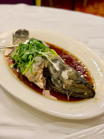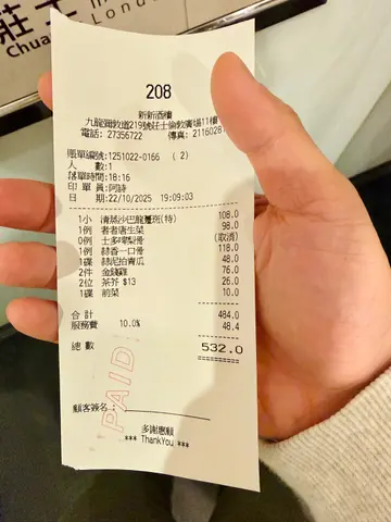 新新酒楼是一家充满传统粤式风情的酒楼,复古的酒楼格局。一入座便奉上枱面花生,这是传统酒楼的经典小食,简单却充满怀旧情怀。蒜泥拍青瓜这款小食清新开胃,青瓜爽脆,搭配陈醋调味,酸香适中。少量炸蒜点缀其中,提升了口感层次,入口清爽不腻。蒜香一口骨每件骨头大小适中,刚好一口,份量适中至少有十件。外层炸得香脆,蒜香味浓郁扑鼻,咬下去肉质嫩滑,蒜香与肉香完美融合,令人停不了口。啫啫唐生菜热腾腾上桌,煲气十足,令人食欲大增。超大只虾干与肉碎搭配,酱汁浓郁惹味,唐生菜保持玻璃般爽脆口感,份外新鲜,熟蒜的香气与虾干的鲜味相得益彰,整道菜用料扎实,绝不马虎。清蒸沙巴龙趸是鱼肉嫩滑新鲜,即㓥即蒸,保留了鱼的天然鲜甜份量十足,绝无偷工减料,简单的清蒸方式更突显食材品质,适合追求原味的食客。怀旧金钱鸡是全晚的最大惊喜,怀旧金钱鸡在许多酒楼已难觅其踪,新新酒楼却将这道传统菜式完美呈现。金钱鸡由三层组成:面层是柔软猪肉,中间是鸡肝,最底是入口即化的肥膏,淋上叉烧蜜汁,味道浓郁。咬下去层次分明,肥膏的油香、猪肉的柔嫩与鸡肝的干香完美融合,甜咸适中,令人回味无穷,绝对值得一试!…查看更多