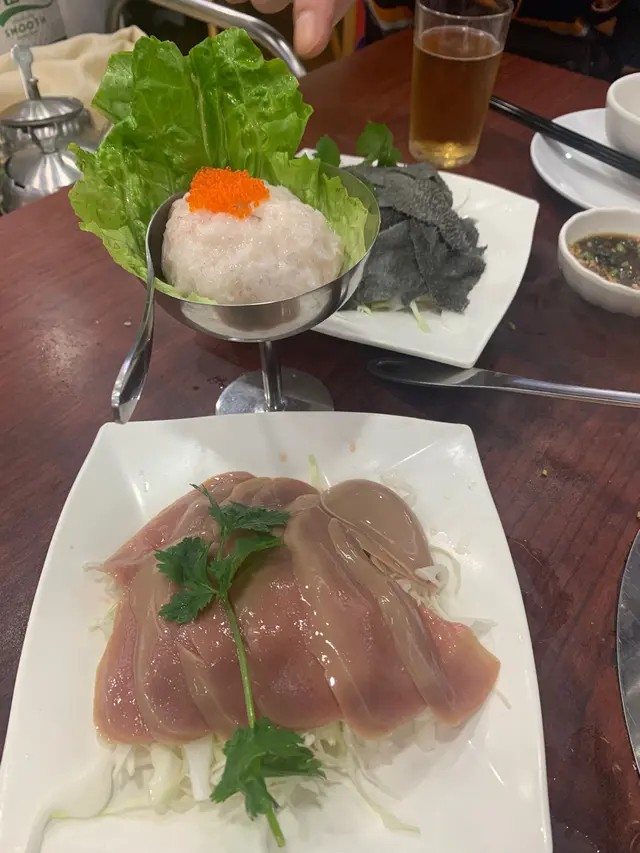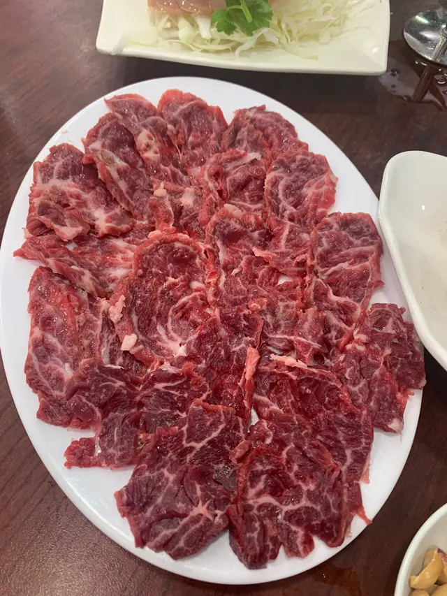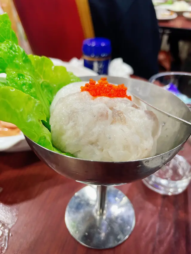 依間平時好夜凌晨見佢門口都多人坐低食火鍋同點心今次嚟但廚房10:30PM就收咗 無哂炸嘢叫唔到蜆介鯪魚球 餐前小食得返炸魚皮就skip小食啦叫咗大份手切牛,加$1 配鹹菜胡椒豬肚火鍋湯底,湯底舀咗幾碗飲,食埋啲豬肚👍🏼居然兩人食唔哂,因為都叫得多嘢。手切牛 牛味OK,係瘦啲有咬勁啲,但肉質尚算腍,食落其實似牛柳應該都幾啱炒嚟食,如果火鍋就唔好淥太熟。我個人都偏好食手切本地牛,貪佢唔肥肉味濃,反而肥牛和牛嗰類我mmd。珊瑚蚌桂花蚌雙拼,幾鮮甜👍🏼山東羊肉唔錯,有少少🤏🏼羊膻味👍🏼魚皮餃好大粒,咬開啲肉汁流晒出嚟,味道唔錯👍🏼火鍋我鐘意食脆骨腩,不過就唔係度度有同好食。依度看似細細舊,食落都爽脆,係要小心啲碎骨。棉花魚肚好棉!好食!雞子、什菜、鮮淮山就正常嘢啦唔洗講有回頭嘅食店😆👌🏼查看更多
