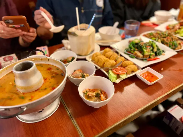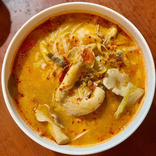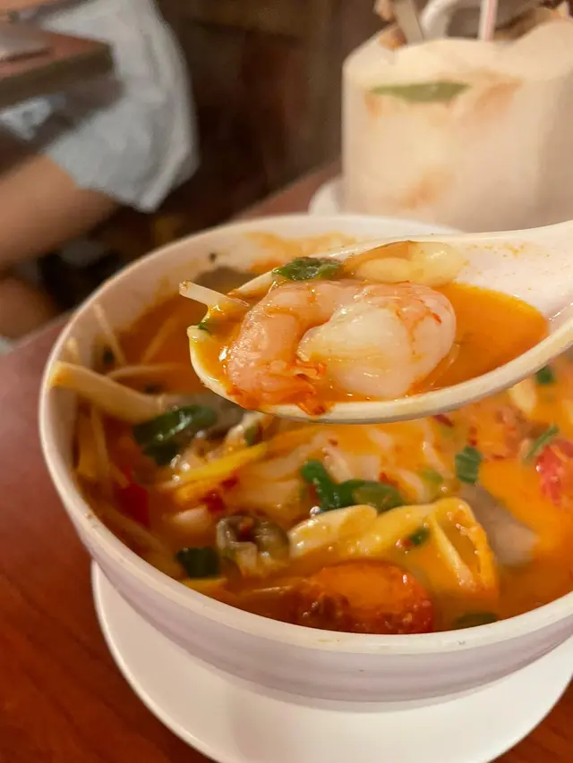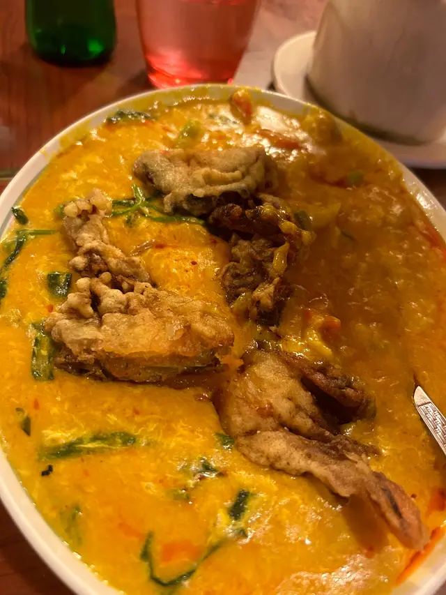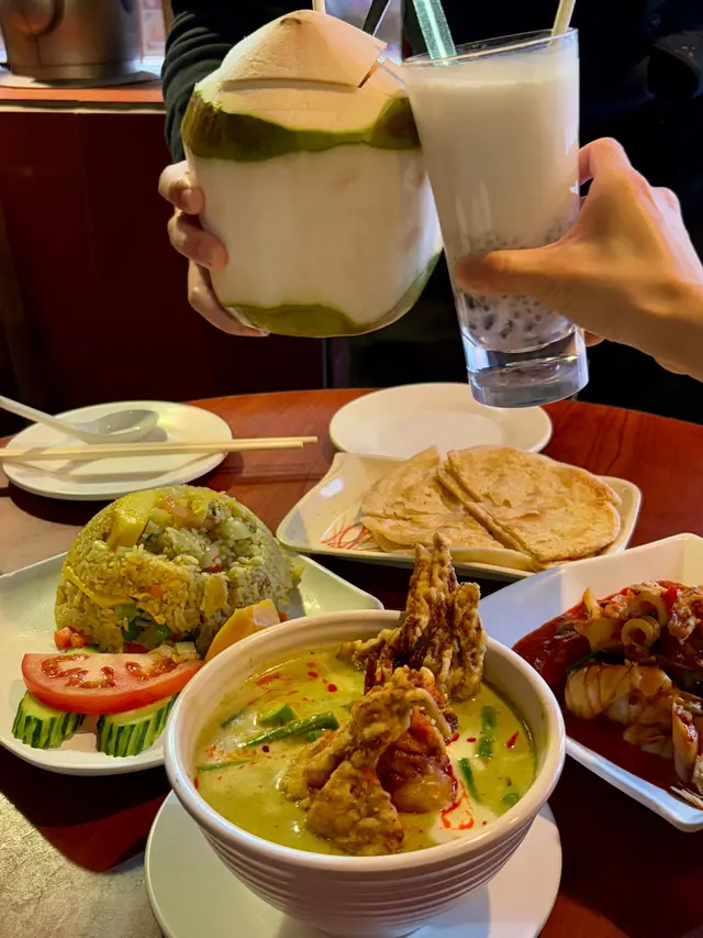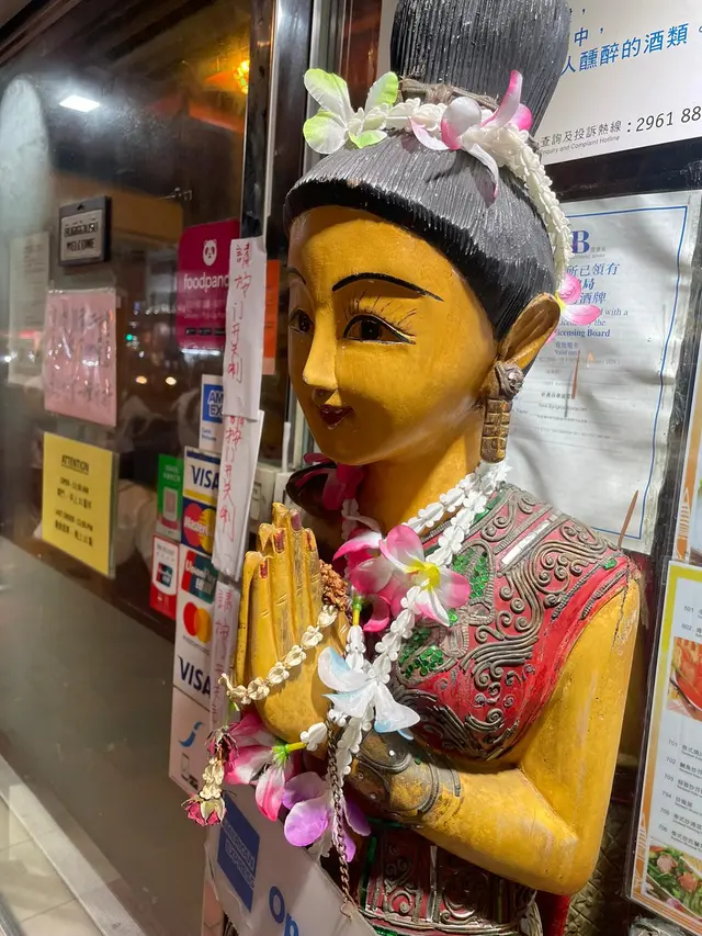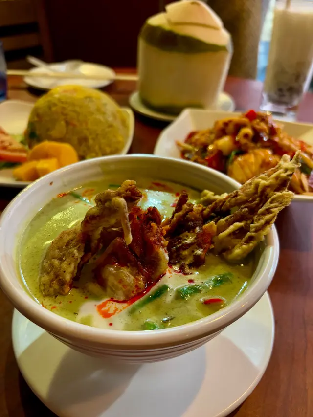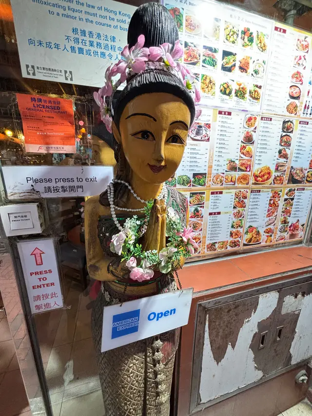 在灣仔街角,一間泰國小店演繹著泰國風情。沒有浮誇裝潢,竹編燈籠映著手繪壁畫,木質長桌,每處細節都好泰國🇹🇭菜單藏著主廚二十年的功力。🦀 青咖喱軟殼蟹金黃酥脆的軟殼蟹浸潤在翡翠色咖喱中,椰奶溫柔裹住檸檬葉的辛香,用湯匙輕舀仲可以撈到燉至綿密的泰國圓茄。當薄餅遇見咖喱,不只係飽足感,更似係蘸上靈魂醬汁! 辣椒膏炒鮮魷 彈牙的鮮魷裹著橙紅醬汁,馬拉盞的咸香混著羅望子酸韻在舌尖炸開。 芒果蝦炒飯熱帶陽光的水果甜芒果丁和泰國米的融合,加上脆口的鮮蝦仁,香甜軟糯! 從牆面斑駁的舊電影海報到角落的鍍金小象擺件,每個細節都在訴說泰國故事。 查看更多