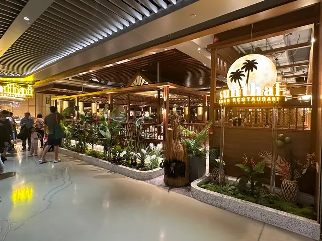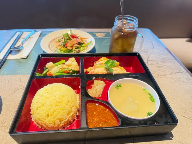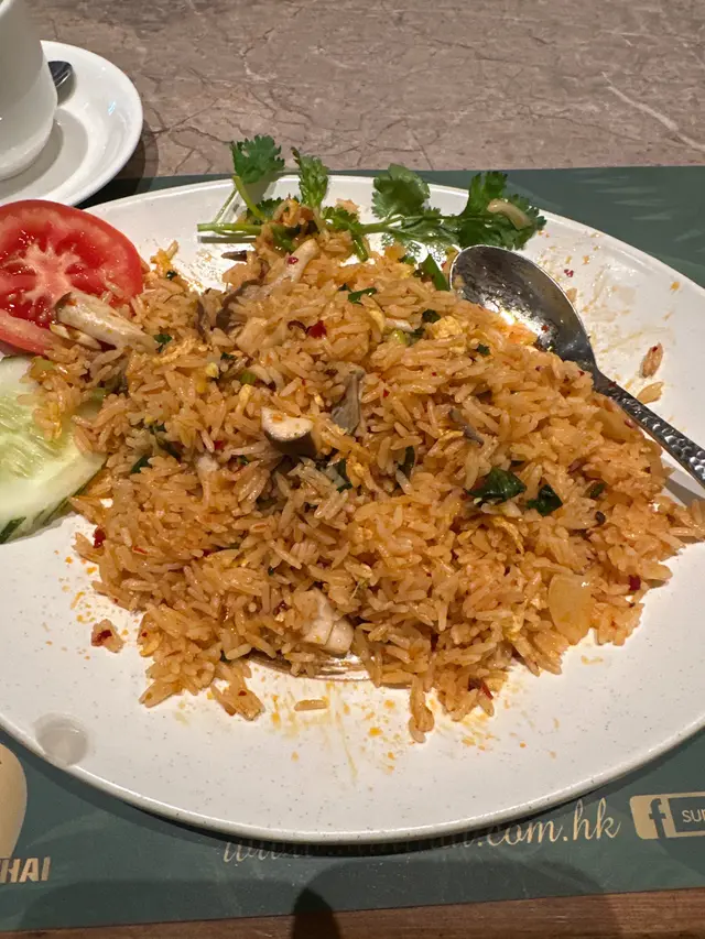 今日去左啟德雙子匯行下商場,食個lunch.同朋友去左一期14樓嘅泰國菜新泰食午餐。餐廳裝修好有渡假風情,坐得好舒服,而且唔會噪。星期六午市都仲有set lunch, 我地叫左一個越式蟹肉炒粉絲 加配 燒豬頸肉沙律。餐飲跟配凍即磨咖啡越式蟹肉炒粉絲都幾大碟同足料, 蟹肉都足,食落香甜,粉絲炒得乾爽口,唔會太重口味,味道唔錯。加$25 配埋 燒豬頸肉沙律,酸辣開胃,豬頸肉爽口好食,沙律菜夠新鮮。串燒羊肉 賣相好靚,燒得啱啱好,配料蕃茄仔,洋蔥,菠蘿等等,色彩鮮艷。羊肉粒,肉質有咬口,帶少少筋,有香濃嘅羊肉味,配埋酸酸地嘅醬汁好夾。蔬果配料新鮮,食落好juicy, 風別係菠蘿超香甜多汁,必試羊肉串燒。原個菠蘿咖哩蝦充滿椰香嘅咖哩食落香甜順口,夠厚身,蝦數過有8隻左右,用咖哩煮完都有食到蝦嘅鮮味,肉質彈牙。放左陣都仲暖暖地嘅香脆印度酥餅配埋咖哩好好食,外脆內軟。泰式凍奶茶,叫左少冰少甜,奶茶味道夠香濃,幾好飲!餐廳都好多泰國人店員,服務有禮親切,環境都好好。…查看更多