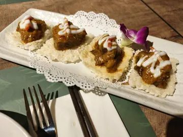泰式甜品小拚盆甜品拼盘总共有四款糕点,每款两件,各有特色。我特别钟意粉红色𠮶件,充满清甜椰青味又爽口,仲有绿色𠮶件,好香斑斓味,口感烟靭。…查看更多