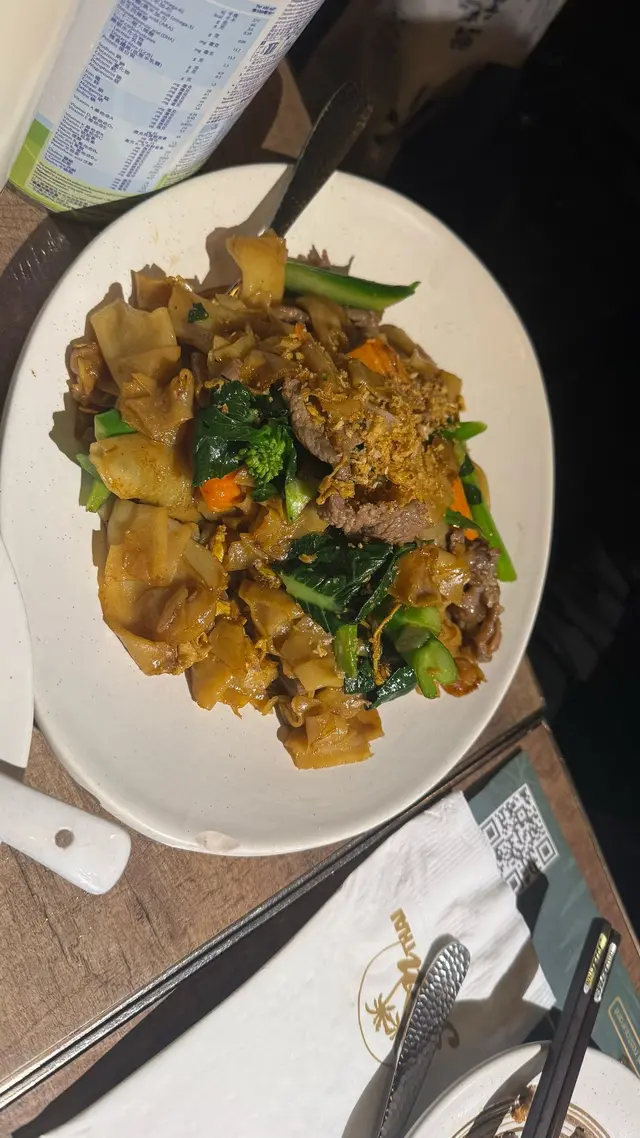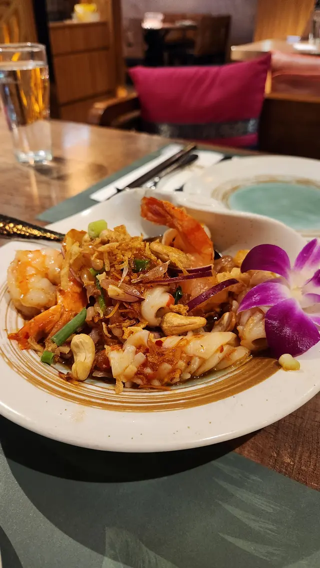 泰式蝦炒金邊粉金邊粉賣相好靚。有幾隻好大隻,又煎得好香嘅蝦。金邊粉味道酸酸地,口感煙靭,好好食。