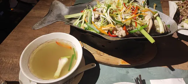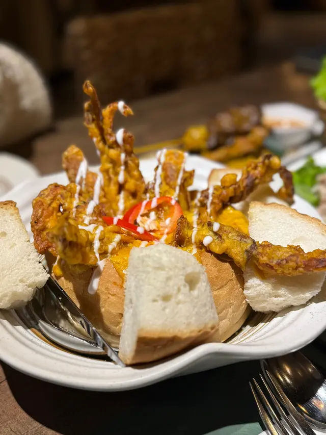 泰式柚子蝦沙律有好多柚子肉,好甜,再加埋個酸辣汁好好食。裏面仲有蝦同魷魚,亦有腰果洋蔥等,味道口感都非常豐富。