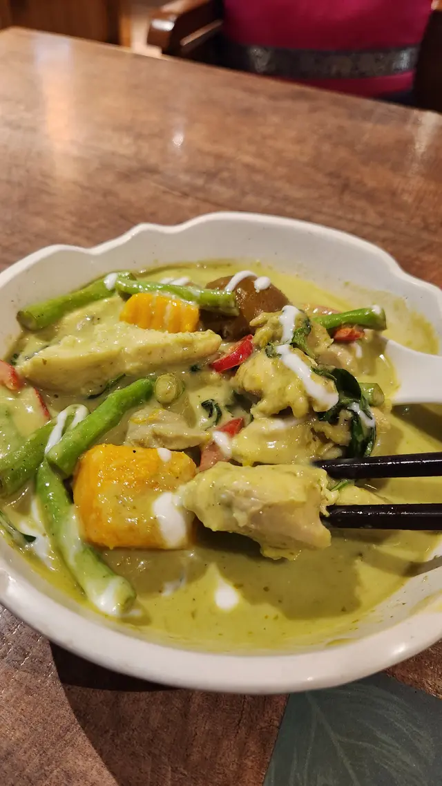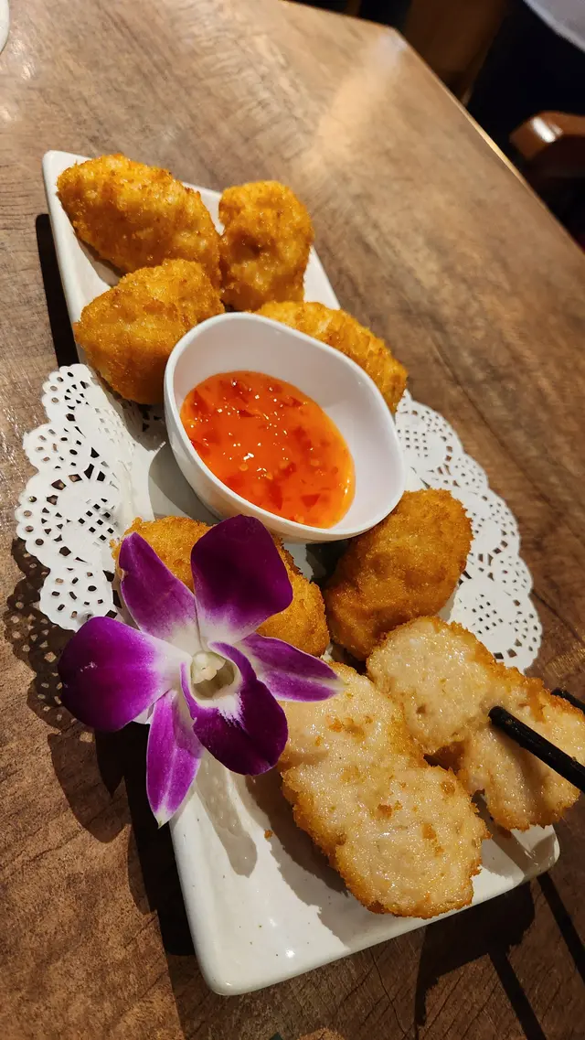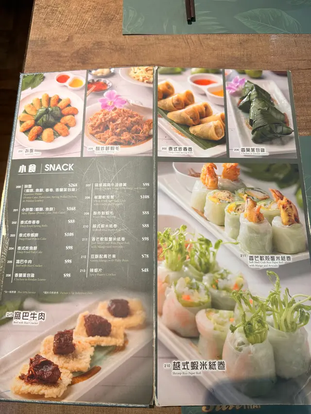 今日同屋企人嚟馬鞍山食晚飯,喺馬鞍山廣場兜咗個圈,最後決定試吓呢間泰菜。由於時間尚早,初初都唔太多人,但坐吓坐吓好快就全場爆滿。好鍾意餐廳嘅環境,佈置精緻,座位寬敞,坐得幾舒服。Menu有好多食物都好吸引,樣樣都想試,最後忍唔住點咗好多嘢食。