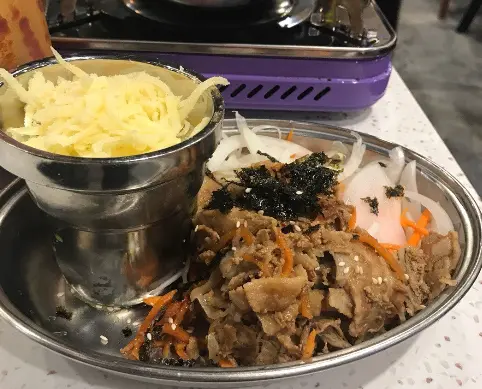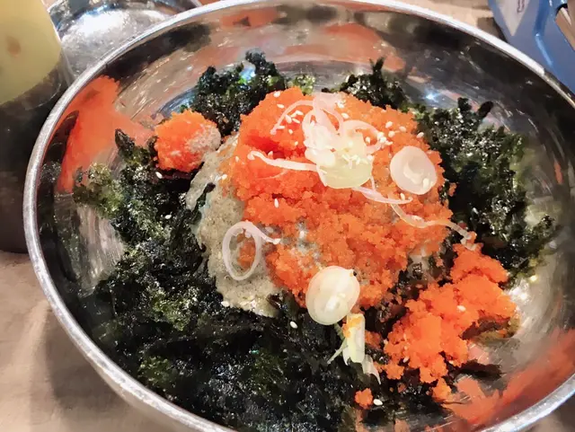 上星期去新派韓食館食lunch間鋪好大間 而且好多卡位店員安排左我地兩個坐卡位 坐得好舒服同上左五款任加既前菜 用黎撈飯幾好食睇一睇餐牌 好多韓國鍋物選擇 有部隊鍋又有海鮮鍋但由於友人唔食既關係 我地就冇叫到我地叫左兩樣野果醃牛肉石鍋拌飯($72)上台已經好有鑊氣 牛肉既份量夠其他材料如蘿蔔、芽菜滿是麻油香將所有材料連埋飯同飯焦撈埋食再撈埋d泡菜好惹味紫菜包粉絲卷 ($42)呢個菜式都幾特別紫菜捲系炸既 非常香脆 裡面既粉絲淋淋地食落都幾得意 幾有層次總括食物質素不錯 環境也不錯而且店裡一直播住韓文歌有幾個店員都有分韓國味感覺就很韓風…查看更多