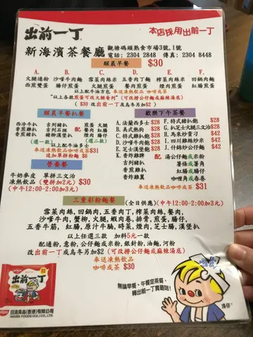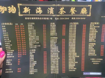 新海濱茶餐廳 (观塘) 网址: https://s.openrice.com/QrLS0oVS700 地址: 香港觀塘海濱道190號觀塘碼頭熟食市場1,3號舖 电话: +852 23042848