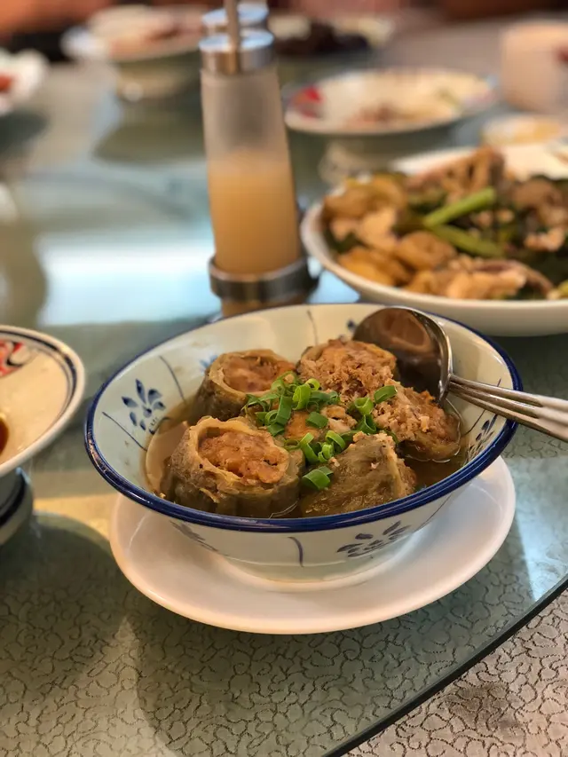 一入到餐廳平平無奇,只係一間普通地道餐廳,每張圓枱都好大張,好岩多人黎食。跟住開始點餐時有某d菜係必食!好似梅菜扣肉、釀苦瓜都係客家特色小食!確實一d都無令人失望!苦瓜唔會好苦,好鮮!肉汁又夠