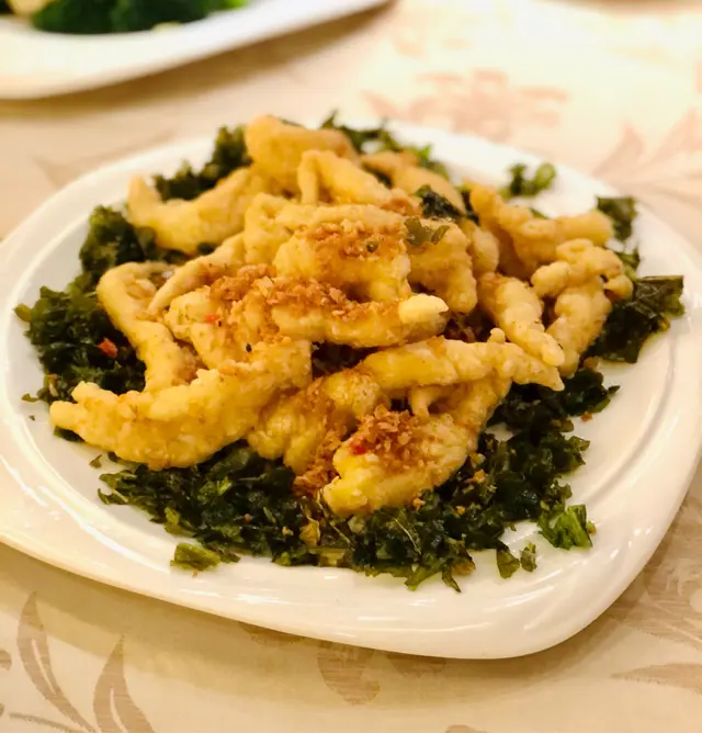 地点系有啲偏僻,系九展🥲冇咩事都应该唔会去,不过如果去开睇演唱会or有活动又唔知食咩好,可以去试下中菜🤣🤣 我今次系夜晚去,叫𩠌食饭!椒盐中虾 $168份量比想像中少啲,不过啲虾又真系几大只同爽口。特别系调味,有好多炸蒜同埋椒盐,超惹味!!!粉丝杂菜煲 $98我都几钟意食杂菜煲🤣🤣因为咩菜都有啲,味道口感都好正常,重有啲菇🍄🍄菠萝咕噜肉 $108都几足料, 啖啖肉冇骨。酸甜味都岩岩好👍🏻配白饭一齐就岩晒啦反沙芋头 $68其实今次系我第一次食反沙芋头,所以冇咩比较。🥲😶🌫️😶🌫️不过我都几钟意,主要就系有一层溶咗嘅白砂糖包住旧芋头,所以一咬落去就会食到好甜,入面就系芋头。芋头都好绵密😆😆😆…查看更多