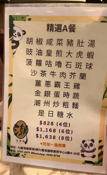 早几日要去九龙湾展贸做啲嘢,所以晚饭都决定喺𠮶边食埋。见到喺大堂有一间食潮州嘢,所以就依间啦。入到去见到环境都好宽敞,坐落去都觉得系干净嘅。店员俾咗QR code我哋自己落单,亦都有比一啲唱牌,我哋睇见到都有唔同嘅菜式同埋套餐。不过因为我同朋友得两个人,所以就散叫。啫啫虾干虾酱通菜成碟通菜非常之大兜,同时上菜𠮶阵时热辣辣,闻到好大浸虾酱味,风味十足,令人食指大动。味道方面,除咗有大量通菜同埋虾干之外,仲有好多虾酱同埋肉碎,呢啲肉碎同埋通菜都充满着虾酱咸香嘅味道,十分有风味。通菜食落亦都新鲜幼嫩,唔会煮得好老,咬落爽脆。讲讲个汤,粟米鱼肚羹非常之大碗,饮晒真系好饱肚。味道方面,调味适中,打芡打得非常好,唔会话成煲嘢觉得好胶或者太水。值得一赞嘅地方系鱼肚非常之大块,而且口感非常顺滑,味道清爽冇腥味。感觉充满着胶原蛋白,再加埋蛋花,令口感更丰富。佢都有俾埋胡椒粉等食客自己落,所以就唔使怕唔食得辣。芝士虾球伊面同样大碟,虾球嘅大细都好够大只啖啖肉。伊面嘅芝士汁,亦都好多,令到成个面都充满浓郁嘅芝士味,诚意满分。味道方面,虾球口感弹牙爽滑,味道清甜。芝士伊面面质扁身,口感较软,所以非常之容易咬开。加上每一条面都充满着邪恶嘅芝士汁,芝士汁亦唔会杰挞挞,令每一啖面都有淡淡都有芝士味,令人食唔停手。甜品系反沙芋头,依个要同职员落单,就冇得Qr code落。反沙芋头其实就即系将砂糖均匀咁包系芋头外层,之后不停翻炒,直至砂糖变成一层外皮包着芋头咁。成碟反沙芋头有足足八旧,真系都差啲食唔晒。味道方面,上碟𠮶阵时旧旧都热辣辣,虽然有啲辣口,但热力令到砂糖外皮更加脆口同香甜,芋头亦都好甜,同埋软滑,外脆内软,令口感更丰富。而且个砂糖皮唔会话太厚令到面太腻嘅感觉。总括依度嘅水准都好唔错,下次会再想试吓食佢嘅鸡同其他汤!…查看更多