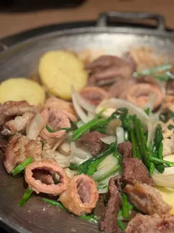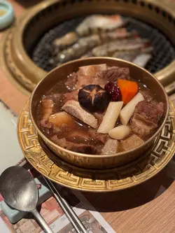 a truly reliable michelin-guided spot—this is one of my go-tos for kbbq in hk! u simply cannot leave without trying 🐮marinated galbi. the beef is so tender and the flavour is deeply savoury-sweet, caramelising perfectly on the grill. I highly, highly recommend it. to mix things up, we also enjoyed the 🍲beef & homemade noodles hotpot. it was deeply comforting with a rich broth and wonderfully chewy noodles. the 🐙boiled cuttlefish was another great choice, served fresh with a sweet-spicy dip that was addictiveone word of advice: we made the mistake of ordering the 🦀seafood tteokbokki ‘less spicy’. it ended up quite bland and lost all its character. definitely stick with the original spice level for this one!呢间绝对系我喺香港食韩烧嘅其中之一饭堂!蝉联米芝莲指南多年,次次嚟都咁高水准。必食首选🐮特级大牛肋骨!腌得好入味,甜甜哋又香口,烧完微微焦香。另外叫咗个🍲鲜牛肉锅自制面,汤底好浓,面条咬落烟韧,不过牛肉少碎。小食试咗🐙烫墨鱼,配埋个甜辣酱同蔬菜一齐食,好开胃不过有样要提提大家:我哋叫咗🦀海鲜炒年糕少辣,点知变到好淡,所以大家嚟到都系叫返正常辣…查看更多