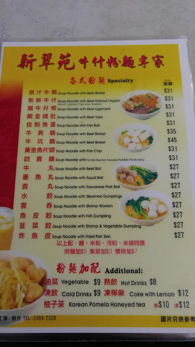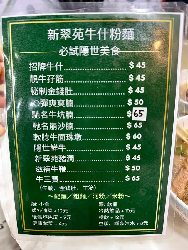 中規中矩啦,比較喜歡重口味的可以前來 EricYuenKC等级12025-01-22201 浏览 关注 因為冇食早餐,路過此地,見到門面OK就入咗去食碗招牌牛三寶河粉,賣相不錯,味道比較重,唔可以用鹹去形容,但係可能係啲汁比較重味,可接受,但個人不太喜歡,要重口味嘅可以過嚟食嘅,碗河粉都幾大碗,食到飽飽,呢個區域$65價錢尚可接受。…查看更多以上食记乃用户个人意见 , 并不代表OpenRice之观点。赞好分享中規中矩啦,比較喜歡重口味的可以前來 新翠苑牛什粉麵 https://s.openrice.com/QrLT0Lh1P00检举 张贴 评分3味道3环境4服务4卫生3抵食用餐日期2025-01-22用餐途径堂食人均消费$65 (午餐)