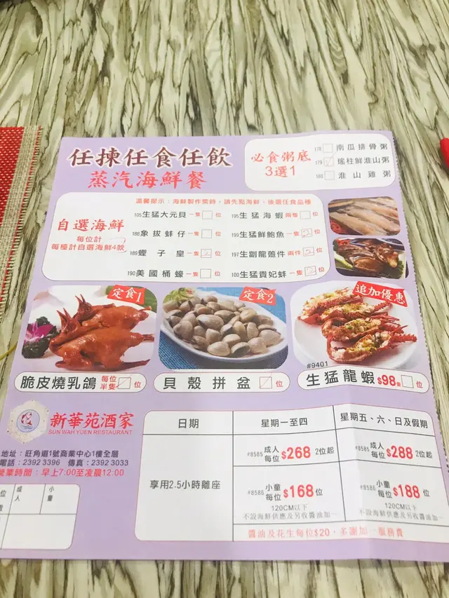 當晚禮拜日10個人散點嗌左12道菜其中孖寶嗌左兩份:龍蝦伊麵+炸子雞, 蒸青斑+燒鵝魚算新鮮,蒸既時間控制得宜,夠滑雞肉亦唔柴,有汁本來想嗌返個湯,點知主任話乜湯都賣晒跟住想嗌個椒鹽九肚魚,都係無,,有d可惜好在個粉絲蟹煲唔錯,挽回唔少分數環境同一般傳統酒樓差唔多,有屏風間出雀區樓面伙記唔算多,但而家既經濟市道算係咁清晒檯後,送每人有碗紫米露,,主任上埋碟叉俾我地分蛋糕招呼算幾好地理位置遠離旺角食肆重心一級戰區,,以人均消費黎講,ok唔貴…查看更多