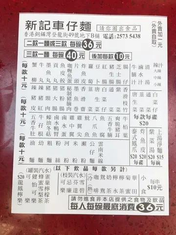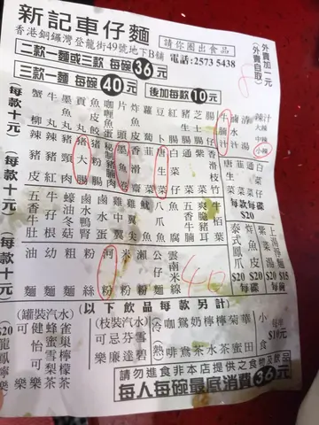 呢个真系我嘅comfort food新记车仔面位于登龙街不嬲都有好多人排队有时经过都会食下因为佢呢度嘅辣汁真系好滋味有几款𩠌我特别钟意辣猪红🐷用卤水汁煮咗好耐入面有美味嘅辣味,话梅味,卤水味而且十分之爽口唔会一咬就碎晒白萝卜呢度嘅白萝卜应该系我食过嘅车仔面入面最甜而且佢会将外面嘅皮批左好多所以你食落去都唔会有好多渣卤水鸡翼🐥卤水得十分之入味而且鸡肉亦都保持嫩滑不过份量真系唔多大食嘅人可能要加底先够…查看更多