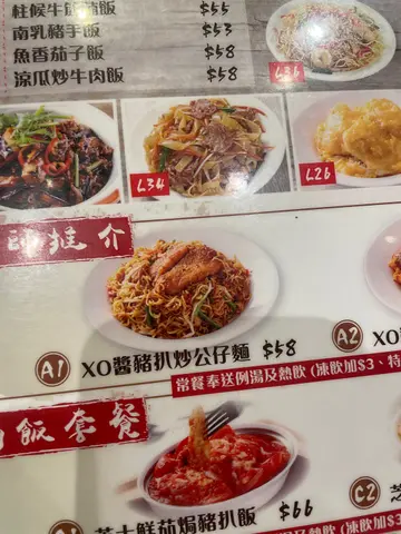 近排喺旺角呢边上堂,放lunch就试吓啲新嘢,见呢间新记几多好评就入咗嚟一坐低啲姐姐都好好服务,入座落单都有吹两嘴,成个感觉都唔差我叫咗份厨师推介嘅XO酱猪扒炒公仔面,本身唔太喜欢芽菜同葱,落单姐姐都话可以走芽菜葱,咁就啱晒我点知一上台,好似湿炒咁,唔够干身,腍啤啤。最唔明系用红萝卜丝炒,喺香港食过咁多间炒公仔面真系未见过会咁炒法,啲味道完全唔夹,再加上炒得咁腍咁湿身,搞到成个质感都好唔掂