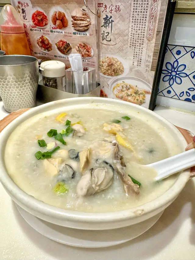新記雞粥 (鴻禧大廈)旺角花園街1號鴻禧大廈地下5號舖旺角行完街去搵野食,臨近新年好多飯局聚會,唔想食得太heavy,有間"新記雞粥"食下粥都不錯!入到去都幾多人,好彩啱啱都有位坐。枱邊就有個QR code自助數碼點餐,好方便,仲可以即時免費註冊會員,儲積分越食越抵!呢度既下午茶餐做2-6pm,有中式選擇又或者係港式下午茶選擇。生滾貴妃雞粥$62新記最出名就係煲仔雞粥,識得食梗係食呢個啦!新記用嘅係貴妃雞,新鮮嫩滑!嫩雞分量多,每一啖粥都好香嘅雞味果然好掂👍下午茶餐可以配炸兩/叉燒腸/蝦米腸/芽菜炒河粉/豉油王炒麵/蘿蔔糕/炒米粉/油炸鬼,嘩!乜咁多選擇,咁好!如果多人食可以share樣樣試。炒河用嘅係幼身河粉,豉油炒得好香,真係出面先食得到嘅鑊氣炒河粉!鮑魚火腿通粉$37呢度仲有港式套餐,朋友食呢個話都不錯,大大份又夠飽,套餐配炒蛋、可升級配埋香港名物菠蘿包(+$3)。全部下午茶餐都奉送熱飲!熱奶茶,茶香奶滑!正!不過特飲都唔係加好多錢,七喜龍眼冰(+$8)綠綠地色嘅特飲,好多龍眼。紅燒元朗脆皮乳鴿乳鴿都係呢度嘅招牌,忍唔住叫埋!🤪乳鴿皮炸得咸香脆口,厚肉啖啖肉,好食!旺角中心地段,食物性價比高!仲有呢度啲阿姐服務態度好好!勁殷勤,會主動畀紙巾。態度非常親切。話晒都叫旺角出名小店,服務態度都咁好實屬難得!#新記雞粥 #旺角美食 #旺角 #chinesecuisine #contonesecuisine #中式小菜 #脆皮炸乳鴿 #海蜇手撕雞 #魷魚鬚 #雞粥 #Congee #sunkeechicken #mk查看更多