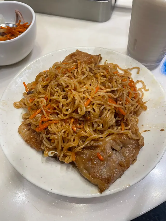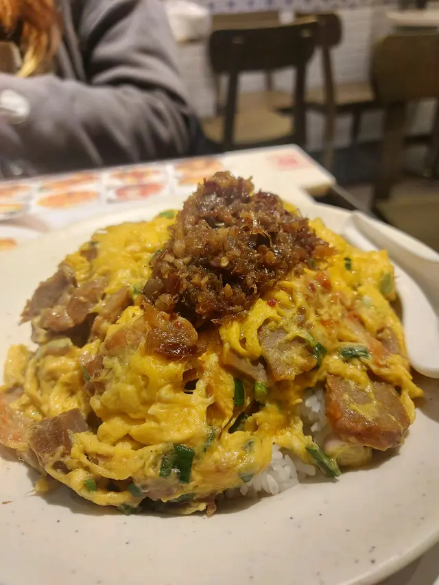 薑絲豬潤通粉配多土炒蛋熱奶茶