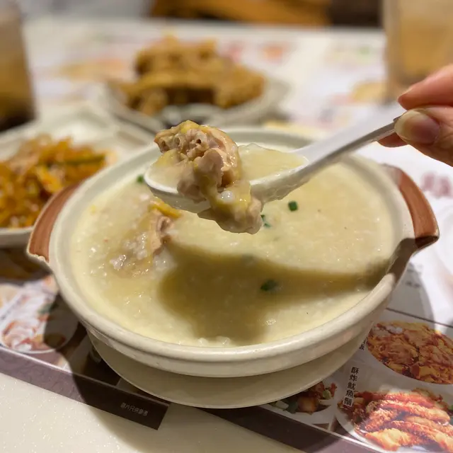 提示1. 晚上7點前唔洗排隊  提示2. 酥炸魷魚鬚建議叫「一份」,因為真係好好食!  提示3. 麻甩餸酒推介:海蜇手撕雞!    今日凍凍地想食粥,平日行過見入面坐滿晒人,終於有一日可以準時返工,可以去食喇!😋    貴妃雞粥 💰61  一上枱,真係蒸氣騰騰,每一啖咬落去都充足熱辣辣嘅雞油🐥🐔🐓,啲肉好滑。啲雞多到啲粥食晒都未食晒啲雞,但一碗真係唔夠兩個人分。    半份酥炸魷魚鬚🦑 💰37  超級香口,炸粉啱啱好唔會太厚,配埋喼汁做調味真係絕配,三爬兩撥就食晒,建議兩個人或以上就要叫足一份!    菠蘿咕嚕肉🍍 💰63  酸酸甜甜好開胃,每一啖都係肉,大大舊好實在。    蒜茸炒菜芯 💰53  個菜正常水準,有家嘅感覺,食落都爽嘅口感。    半份海蜇手撕雞 💰35  呢個海蜇出面好少見咁惹味,手撕雞同榨菜即刻變左配角,餸酒一流!  查看更多