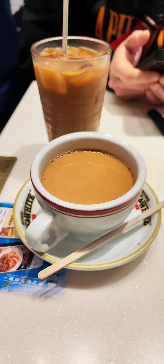 燒味飯(三拼)HKD58·叉燒、海蜇與鹹蛋半隻的拼盤·海蜇與大陸這邊吃到的確實不太一樣·比較偏脆爽·其餘兩樣較為普通油菜+HKD 10·這個油菜澤上面偏暗色·樣子也是屬於偏粗壯系列·口感上微苦凍鴛鴦 HKD 3凍鴛鴦都比較偏苦一點查看更多