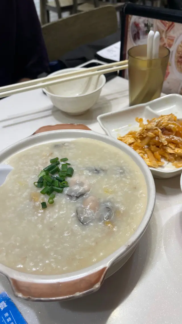 呢日來到旺角呢間老字號好出名嘅雞粥店。來得呢間,馳名本土老字號,一定要叫雞粥同乳鴿!♥️貴妃雞蠔仔粥嫩滑貴妃雞,蠔仔都飽滿大粒,粥底好鮮甜。♥️黃鱔田雞粥呢款雞粥比較少餐廳會做,功夫多,見到有就即點,果然好好味。♥️半份蜆介鯪魚球個人覺得係好食過在澳門食過的鯪魚球,好大粒又彈牙,蜆介唔咸調味剛剛好。♥️半份海蜇熏蹄海蜇爽脆,熏蹄都做得好好,好大片厚肉。♥️紅燒元朗脆皮乳鴿大隻的乳鴿,咬開仲好多肉汁。總結: 係好食值得推介的。餐廳食物超多選擇,係油麻地站同旺角站中間,附近極少這類粥店,可以過來食!原來午市套餐仲抵,有粥有腸粉仲有飲品。侍應好好,午餐繁忙時間要搭枱,都叫食客慢慢食唔使急唔催人。查看更多