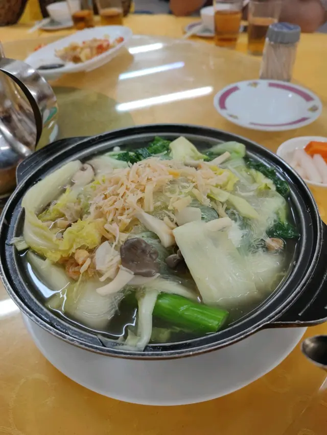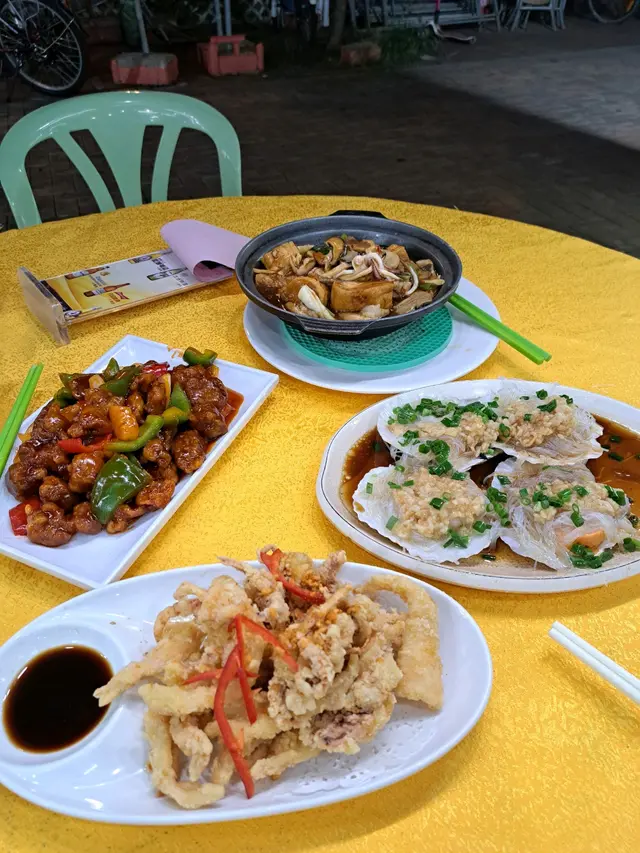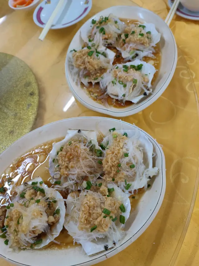 之前天后誕回來幫手,夜晚又來過呢度食飯。覺得食物係唔錯,所以得意帶內地同事今日快閃一日長洲順便嚟呢度食個午飯。基本上都係公道嘅,雖然我哋叫自選套餐食。都有講解自選套餐嘅份量會少啲,尤其是海鮮嗰度。咁所以海鮮嗰度瀨尿蝦就另外叫$298斤。中型size呢個價錢有少少貴,不過炸得幾脆,速殼都食埋。炒青菜同埋乾炒牛河都係另外叫嘅,個牛河幾有鑊氣,但係佢比太多牛肉太少粉,啲同事覺得唔夠飽😂。教返其他食物先,個椒鹽人魚都幾彈牙,將瞓唔算厚個南瓜骨都好香口又夠熱辣辣,可惜南角落得唔夠多,如果再落多少少就正啦。豉椒蟶子同埋辣酒煮花螺佢話同正價小菜份量一樣,咁我就覺得個花螺就偏少咗啲啦,好彩喺自選套餐裏邊嗌同埋啲花螺好似溝咗唔同種類同埋啲肉有少少唔新鮮,如果下次食嘅話可以skip。個蟶子雖然係細隻嗰款,但係都幾好肉,可惜個醬太杰身,有少少似漿糊咁。咁扇貝嗰度跟餐係有五隻,咁加多一隻都係$25都係叫正常價錢,粒元貝都幾鮮甜撈埋啲粉絲蒜蓉一齊食真係一流。食飽飽再望掛喺上面㗎橫額,先醒起有個芝心丸冇叫,我記得嗰個真係好好食,下次一定要再食。…查看更多