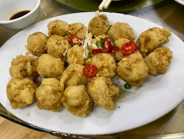 在大角咀的熟食街市,新錦源大排檔的菜單真是讓人眼花繚亂!我這次點了幾道特別的菜,感覺絕對值得分享。首先是椒鹽墨魚咀,外脆內嫩,香氣四溢,椒鹽的味道恰到好處,吃上一口就讓人忍不住想再來一份。接著是蜜汁牛柳薯仔粒,牛肉嫩滑,蜜汁的甜味讓整道菜都增添了層次感,而薯仔粒則外脆內軟,口感十分棒!然後是小炒王,裡面有各種新鮮的時蔬和肉類,炒得恰到好處,簡直是下飯的最佳選擇。最後,白煮海蝦也是不容錯過,蝦肉鮮甜,搭配一點醬油,簡單卻讓人回味無窮。整體來說,這些菜色不僅美味,而且份量十足,讓人吃得心滿意足。中秋節的晚餐選擇來這裡,真的非常合適,絕對讓你享受到美食與節日的雙重快樂!…查看更多