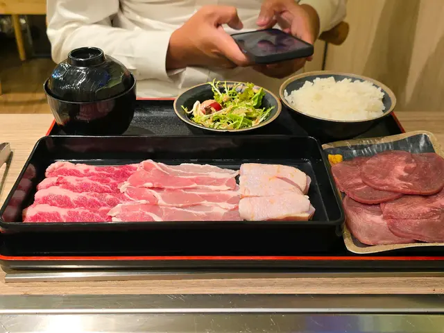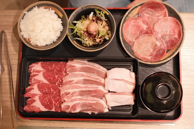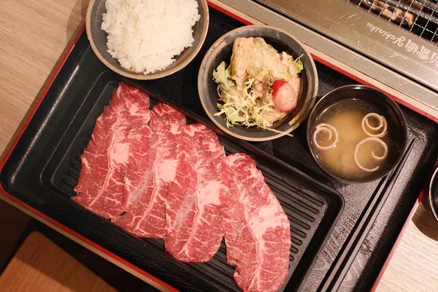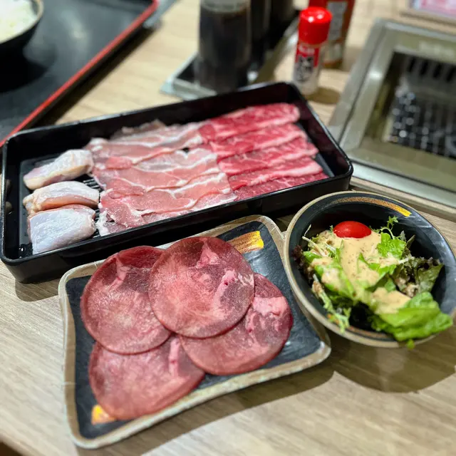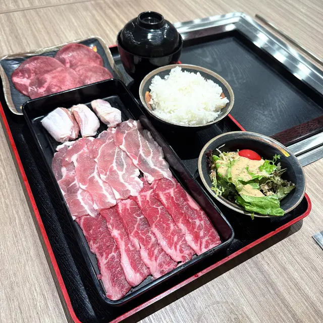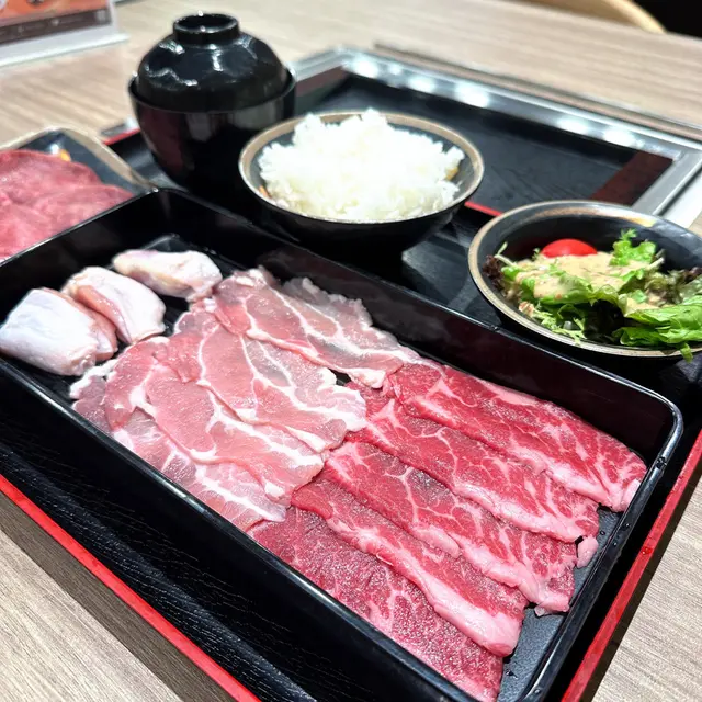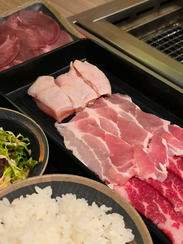 🥩極上牛小排+五花豚肉+雞腿肉+送牛舌芯|💰$148🍖牛板腱肉 |💰$98秋風起最啱食燒肉🍂係觀塘發現一間新開冇耐嘅高質抵食一人燒肉😍!餐廳闊落光猛+企理,坐得非常舒服🤭店內分咗2大區域:燒肉 & 日本料理,一人燒肉套餐價錢親民,$78至$148不等,醬汁、調味料都好齊全👍🏻試咗🥩極上牛小排+五花豚肉+雞腿肉,送50g牛舌芯好很抵🤩套餐包埋白飯、味噌湯、野菜沙律,每款肉類都好新鮮,而且厚身好有誠意,尤其牛小排牛肉鮮味十足,食到停唔到口🤤🍖牛板腱肉都好出色!中間會有條幼筋位,食落好有咬口,而且肉質唔柴,推薦大家試~🥳…查看更多