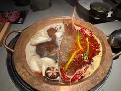维港叮当,芝麻街,滑嘟嘟和Labubu的展览只去到1/11,所以今天特意看看可否影日落,可惜全军覆没,于是周围随意拍摄一轮后,就去找东西吃,看到L Place,有间叫方叔叔重庆火锅,就试试看,其实我们都不太擅长吃辣,所以打算上去看看可否小辣,然后侍应说可以和厨房说声,所以就入去了.我们选了一个鸳鸯锅,一个是麻辣火锅小辣,另一个是珍菌汤,其实佢本身有一个二人套餐688 ,而且这个套餐可免茶钱,但是我们还是想散叫试试看,最后都系觉得套餐系抵啲,所以各位如果嚟呢度食嘅话,都系叫套餐比较好。我们点了黄喉,极力推介,爽口弹牙,牛小排好味,鹅肠都OK,鸭血很滑,因为鸭血一嚟侍应就说这个他帮我们落,所以没影相,另外又叫一个鱼籽虾滑,这个都没有影到,但好好食.讲一讲个汤底,麻辣火锅汤底由于叫了小辣,对我们嚟讲系非常适合,食得落口又有辣嘅感觉,对我哋嚟讲已经系好足够㗎,而珍菌汤非常好味,菇菌味浓郁,而且好清甜,我哋最后有再点鱼漂,手工鱼面和一个长长又扁扁的粉(忘了名字),就配这个珍菌汤,其实我哋都差唔多饮晒d汤,不过想推介各位食鱼漂,基本上烫约30秒就闻到浓浓的鱼香,吃下又是爽口.然后有个叫Jacky嘅侍应和我们倾偈,我一直都觉得佢个服务态度好好,佢都有问我哋点解唔叫套餐,咁我哋都后悔紧嘅,同埋佢都有讲佢老板喺呢间餐厅嘅热诚同宗旨,就系想更加多嘅香港人可以食重庆火锅,所以喺辣度嘅调节都有所改善,题外话,就系佢话初时老板系唔俾有两个清汤嘅,但后来知道其实有啲香港人唔系太食得辣,而且佢哋其他汤底都真系好出色,所以都放宽咗,我觉得呢个几搞笑。佢呢间唔系话食到好饱𠮶种火锅放题,但系个食材质素真系好高,我最近都懒咗写食评,不过由于个侍应服务态度真系唔错,所以我都想喺呢度赞扬吓佢,希望有机会再嚟呢间食。…查看更多