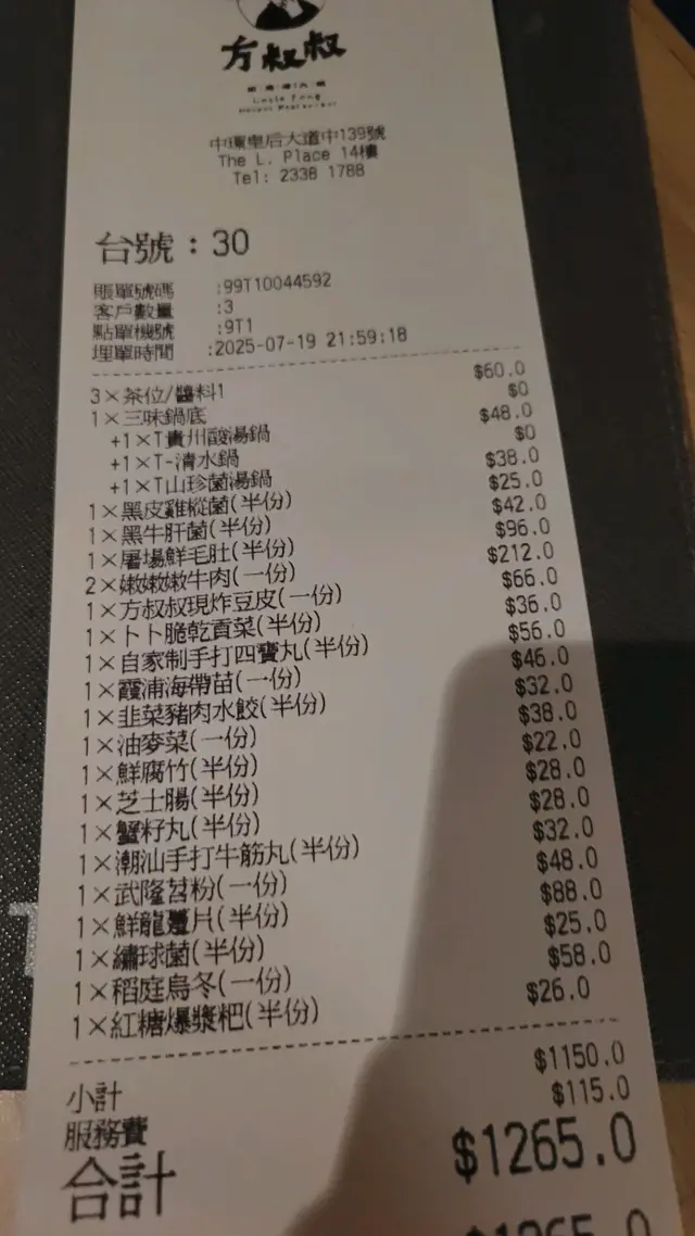 方叔叔重慶老火鍋 (The L. Place) (中环) 网上订位即赚Rice Dollars 网址: https://s.openrice.com/QrLS0CBSB00 地址: 香港中環皇后大道中139號The L. Place 14樓 电话: +852 23381788